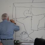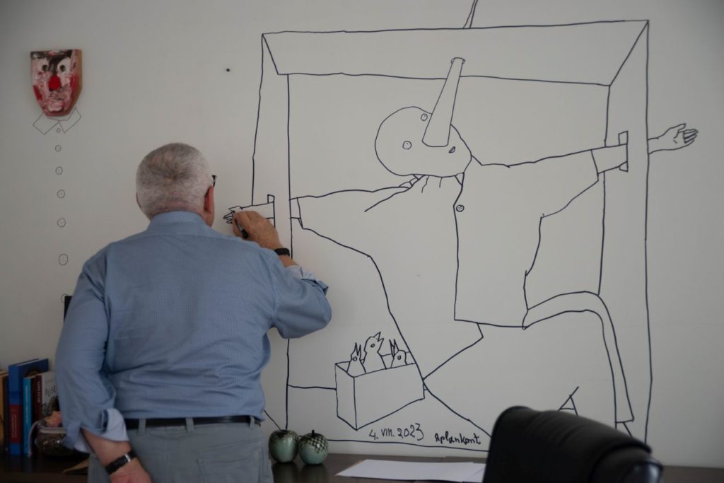 Direktoriaus kabinete ant sienos menininkas tradiciškai nupiešė naują piešinį.