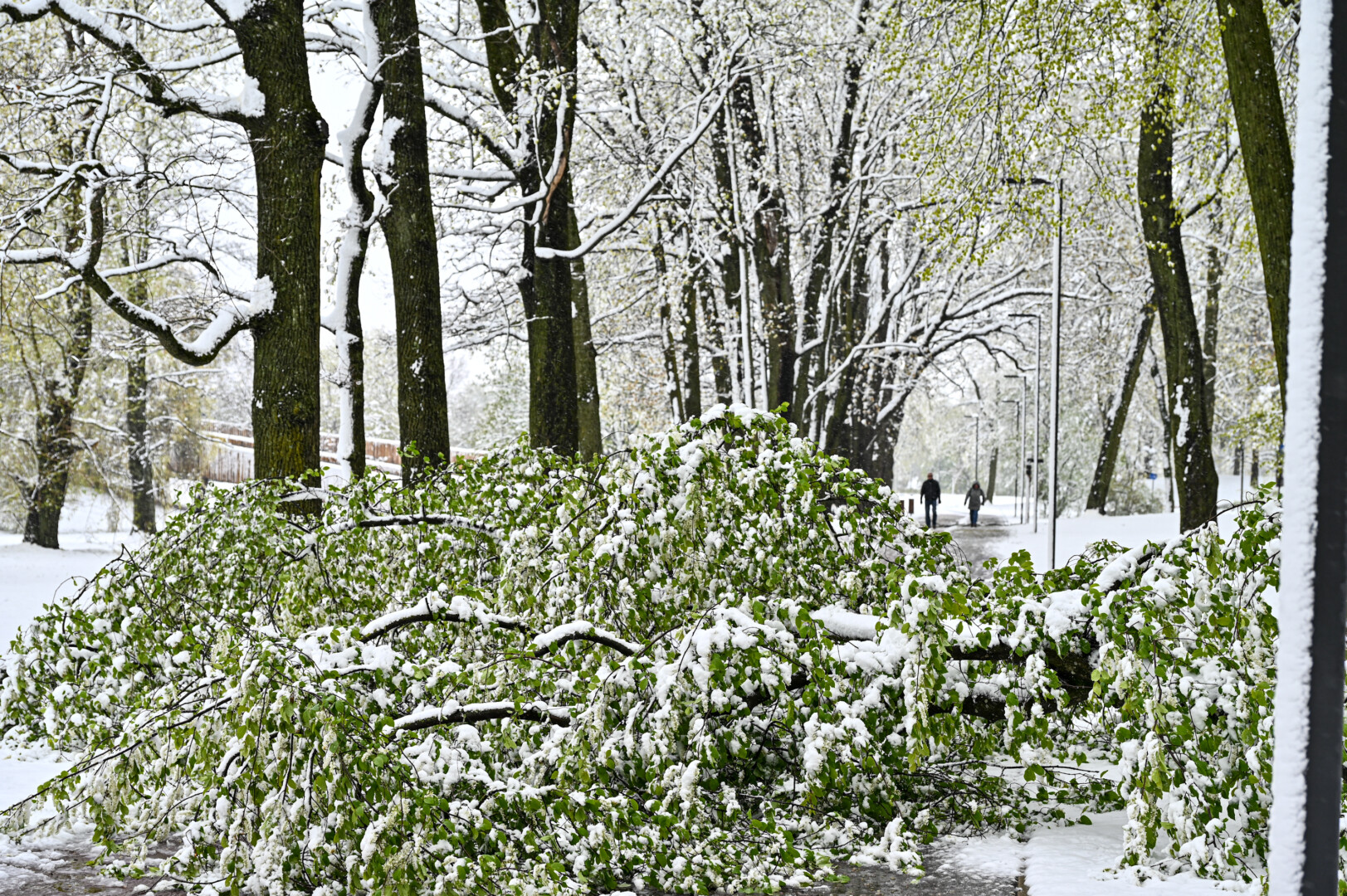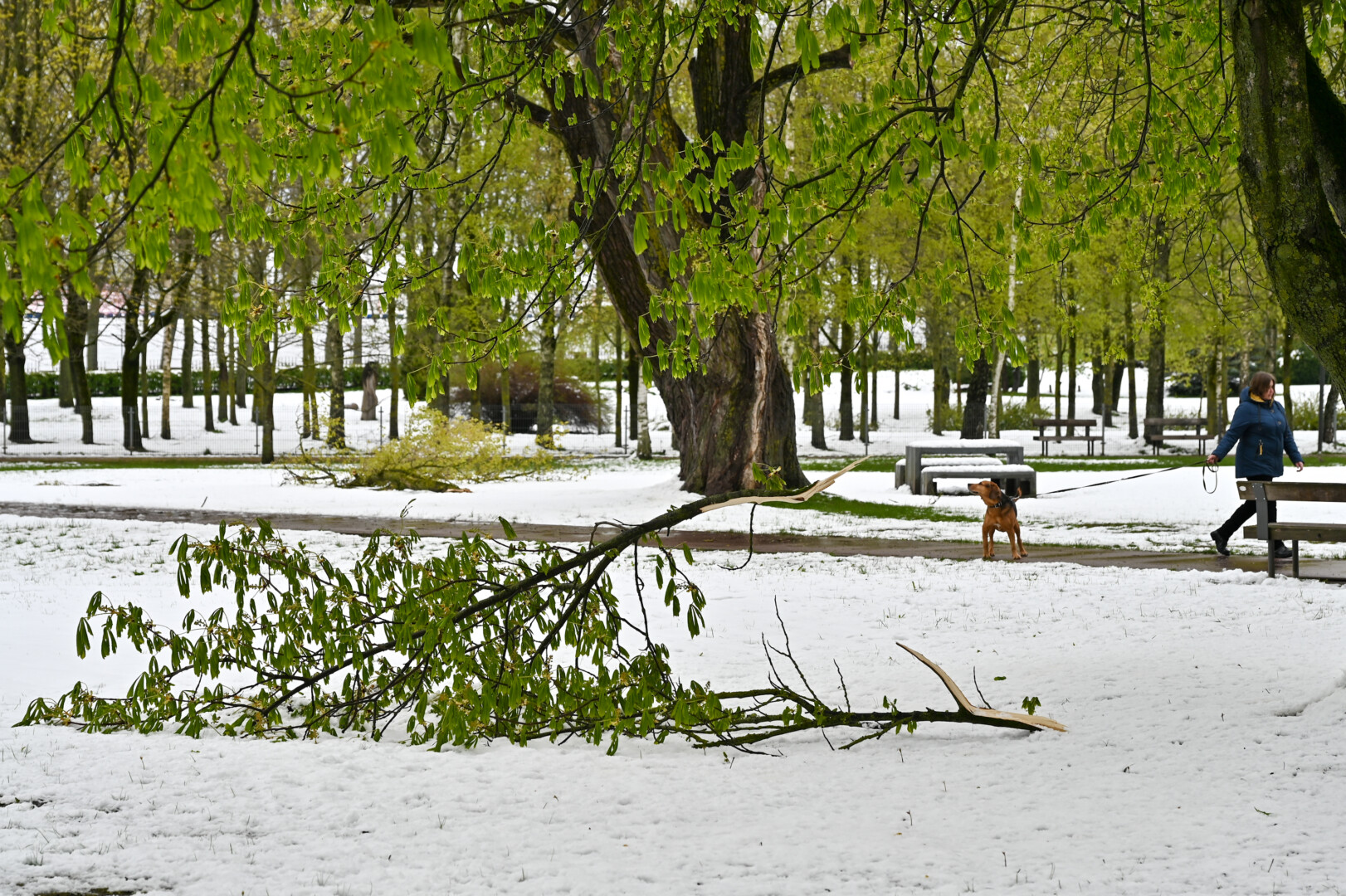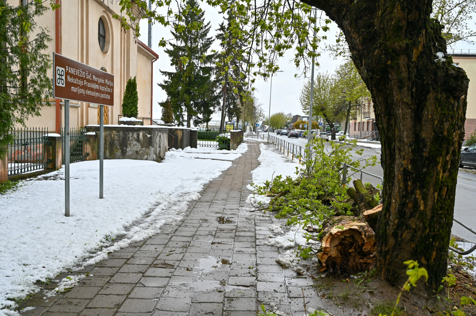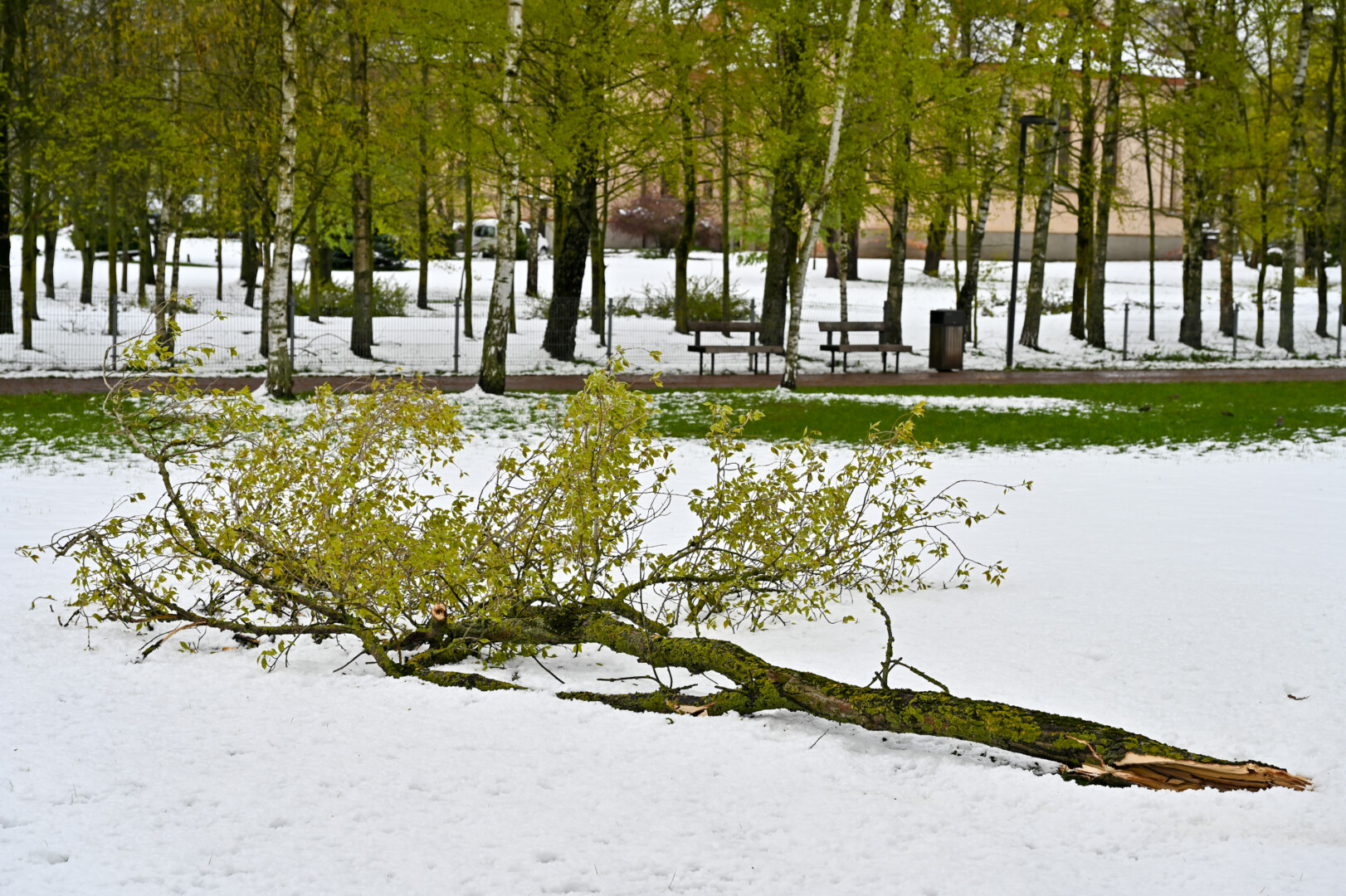 Miesto komunalininkams penktadienį pradėjus žolės pjovimo sezoną, pirmadienį teko vėl traukti sniego kastuvus ir barstymo bei valymo techniką. Panevėžį ir jo apylinkes uždengus net 17 centimetrų siekiančiai sniego dangai, susidaręs pavojingas reiškinys – apdraba – laužė medžius, tūkstančiai gyventojų liko be elektros. Panevėžyje vienas medis užvirto ant važiuojančio automobilio.
