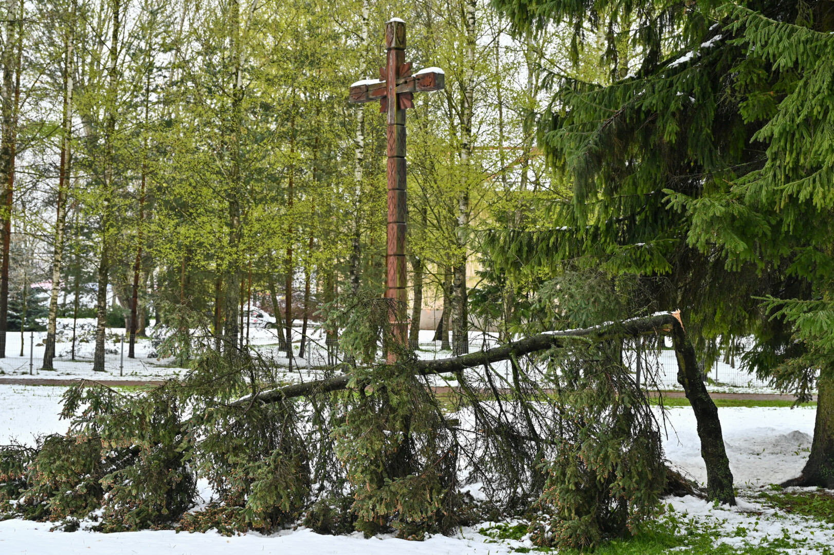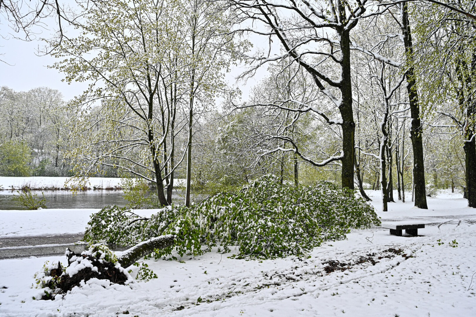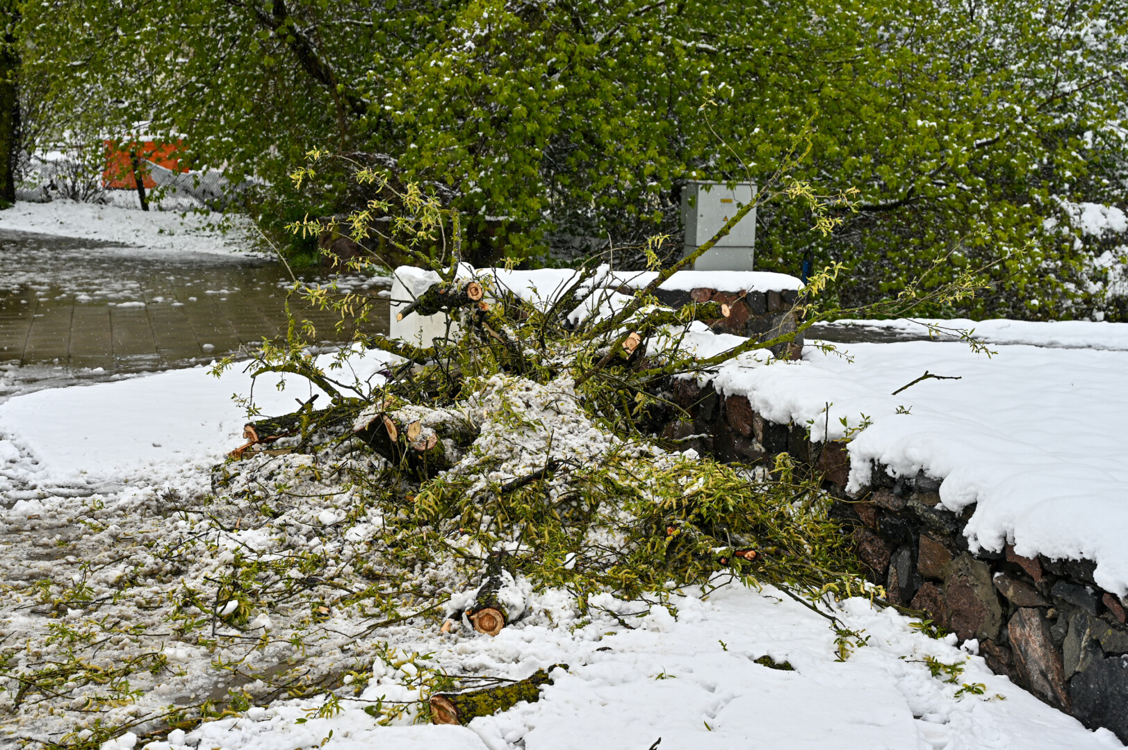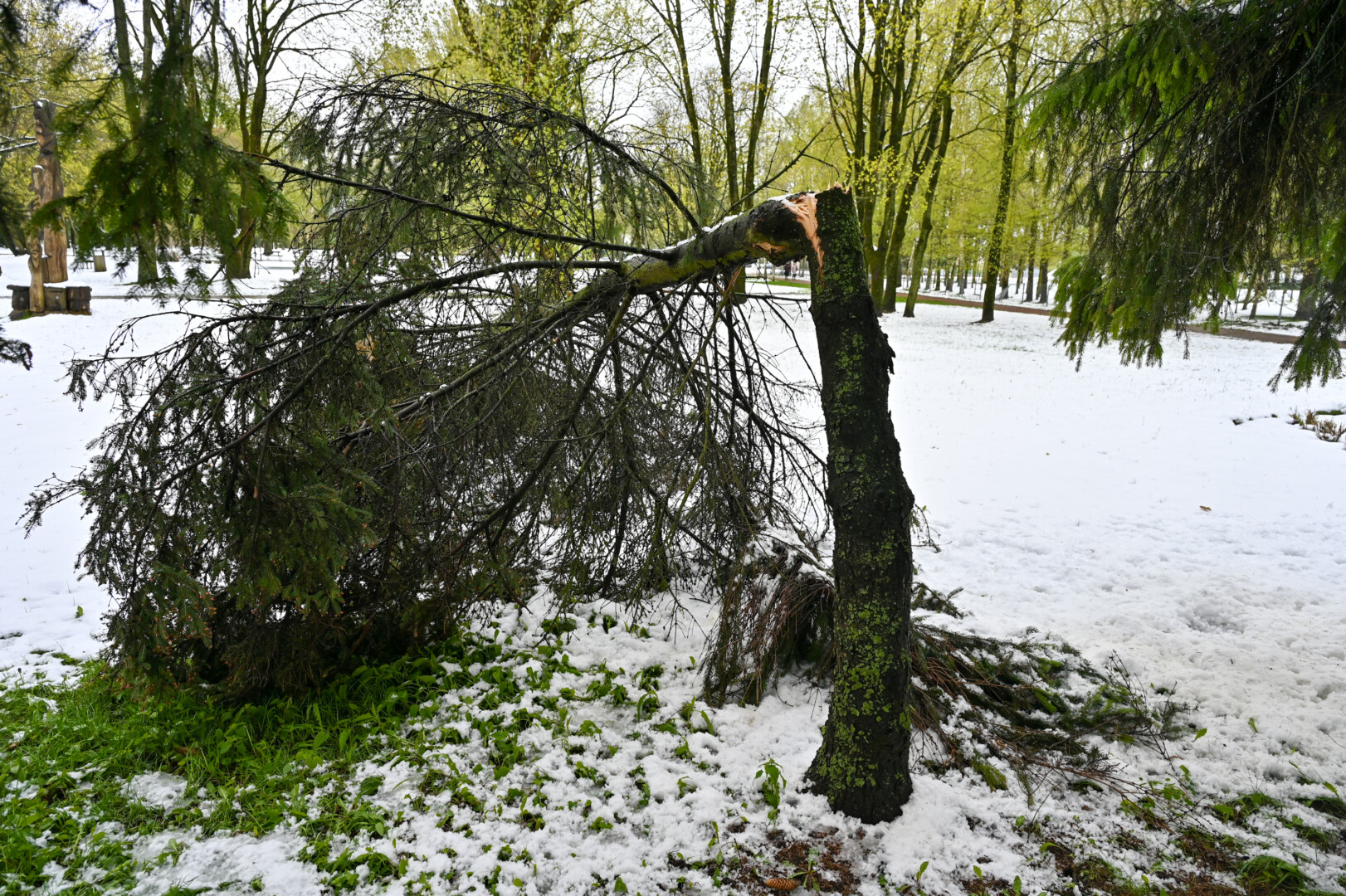 Miesto komunalininkams penktadienį pradėjus žolės pjovimo sezoną, pirmadienį teko vėl traukti sniego kastuvus ir barstymo bei valymo techniką. Panevėžį ir jo apylinkes uždengus net 17 centimetrų siekiančiai sniego dangai, susidaręs pavojingas reiškinys – apdraba – laužė medžius, tūkstančiai gyventojų liko be elektros. Panevėžyje vienas medis užvirto ant važiuojančio automobilio.