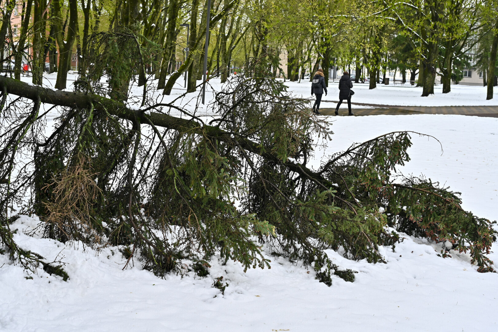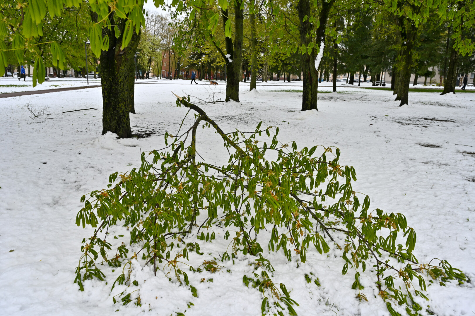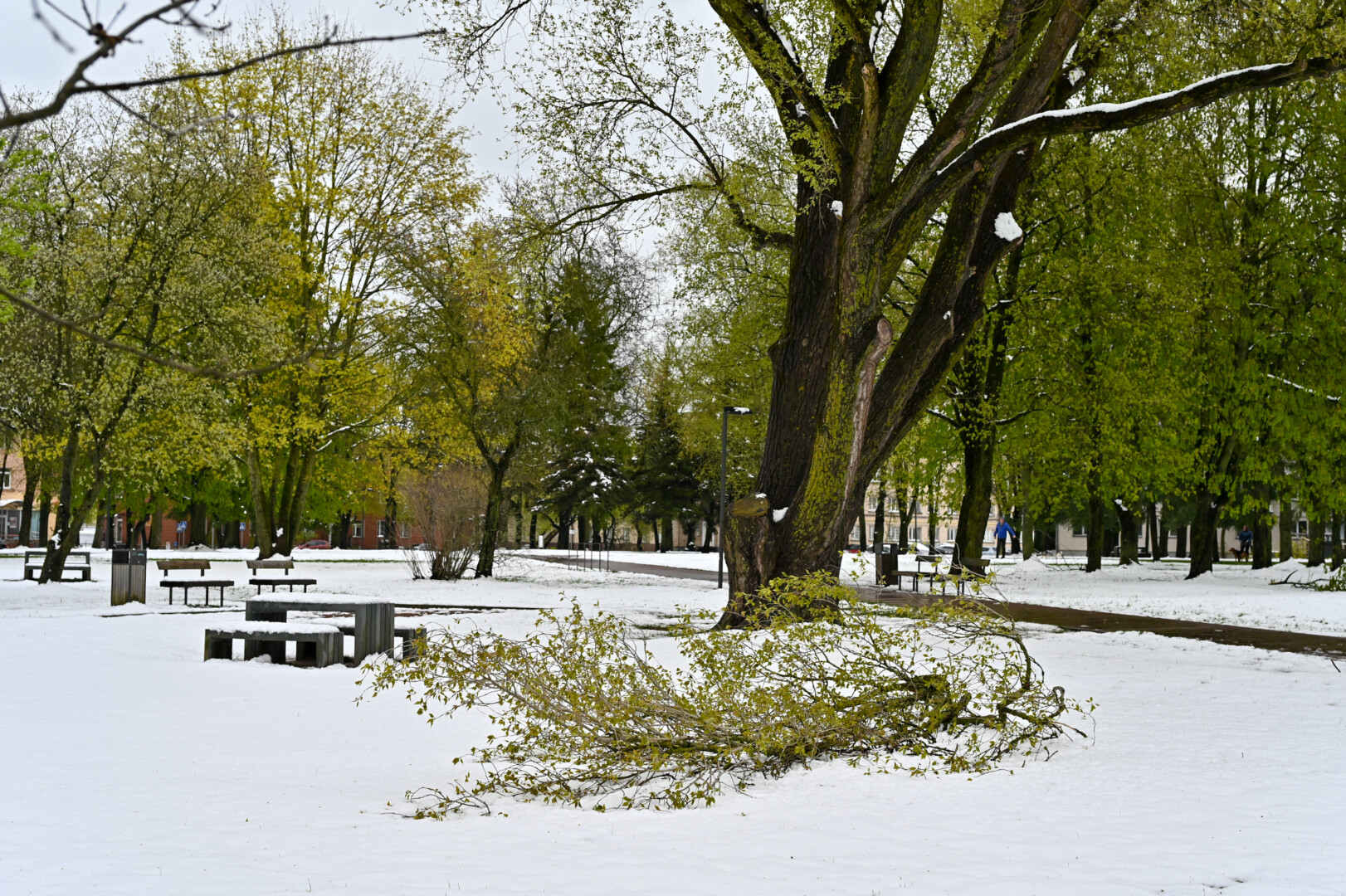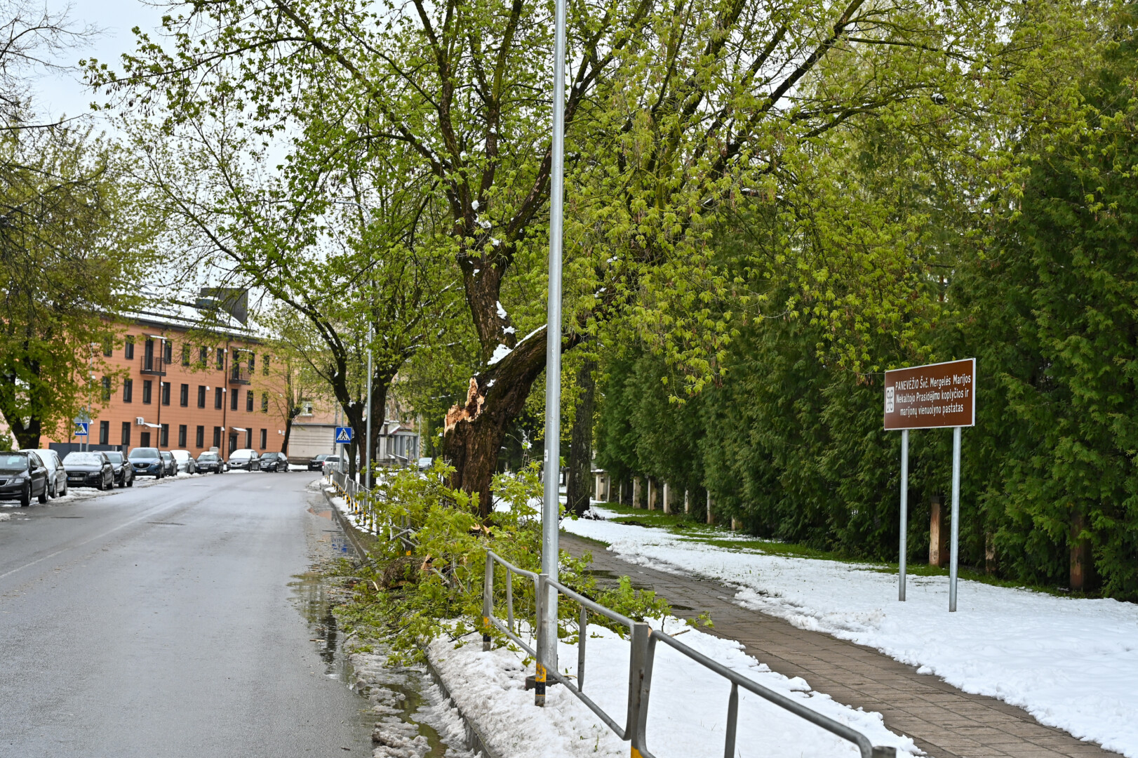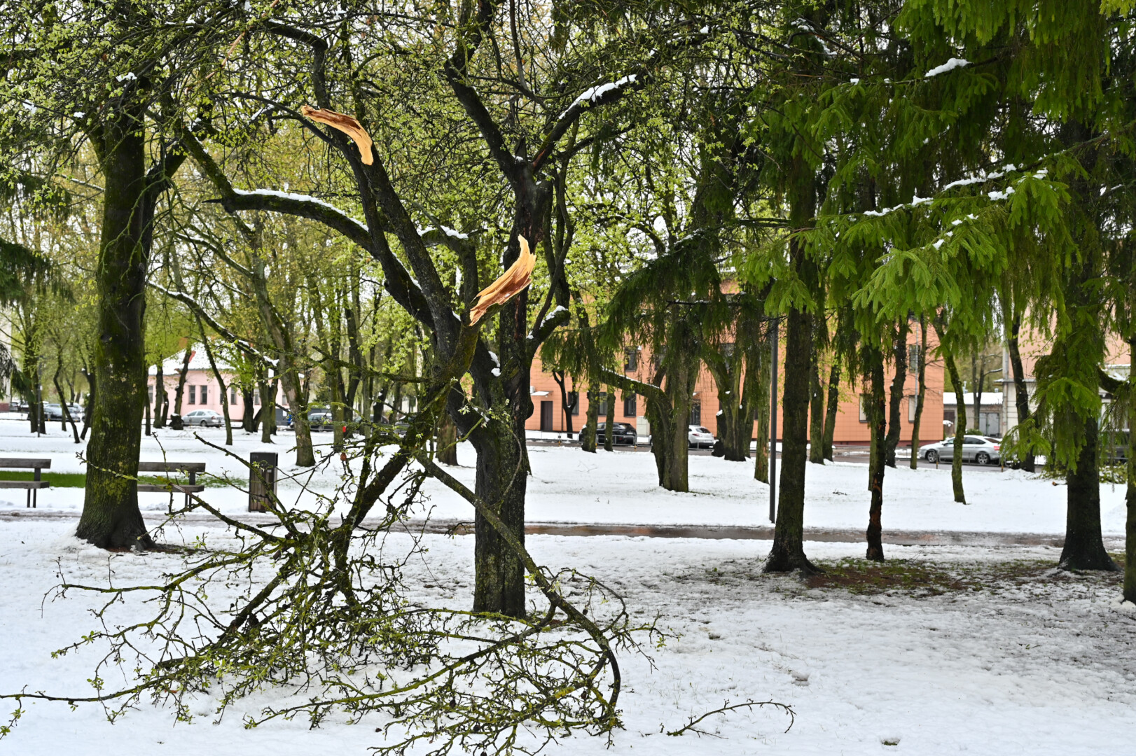 Sniegas išlaužė ir parkų medžius, tačiau šių dar nespėta sutvarkyti. Pasak L. Jankevičienės, pirmiausia skubėta patraukti ir supjaustyti išvartas nuo gatvių, pėsčiųjų takų – kur trukdo eismui ir nesaugu žmonėms.