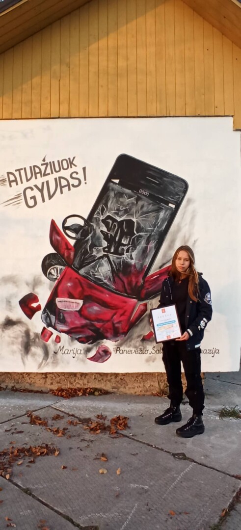 Ne vienas užmiesčio keliais skubantis vairuotojas pastebėjo iš toli akį traukiančius, ryškiaspalvius piešinius ant autobusų stotelių paviljonų. Taip apie saugų eismą kelyje jau trejus metus iš eilės primena be galo kūrybiška panevėžiečių Šmakotinų šeima su dukra Marija priešakyje.