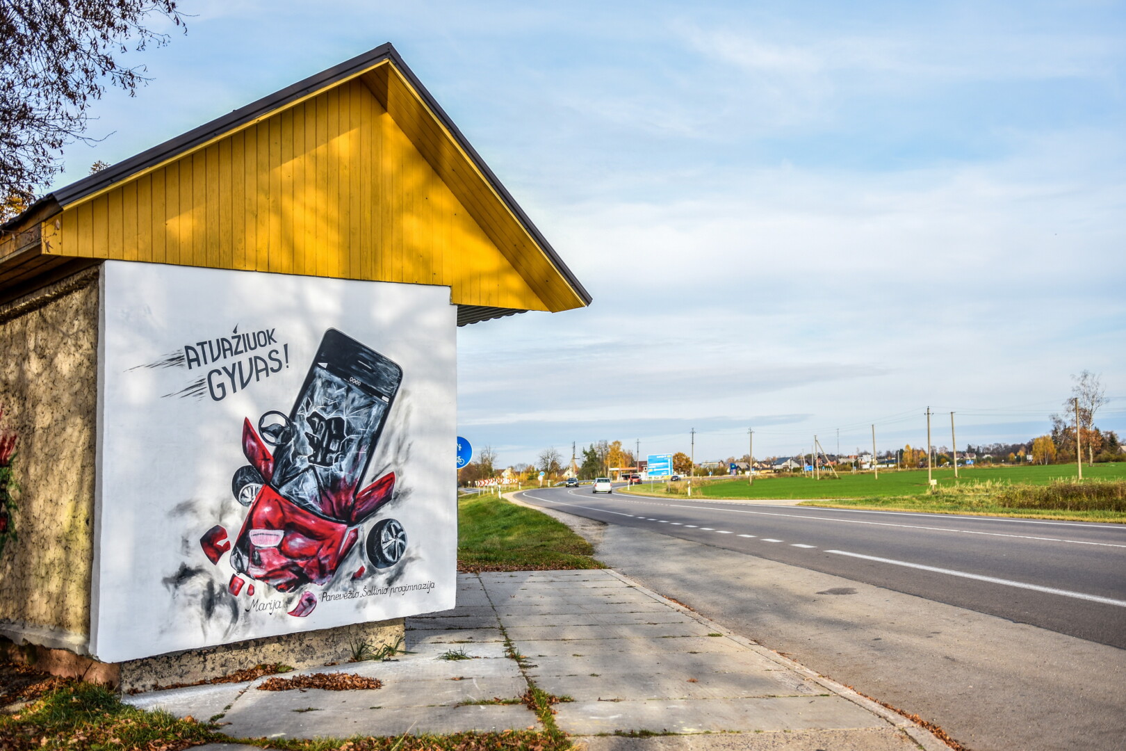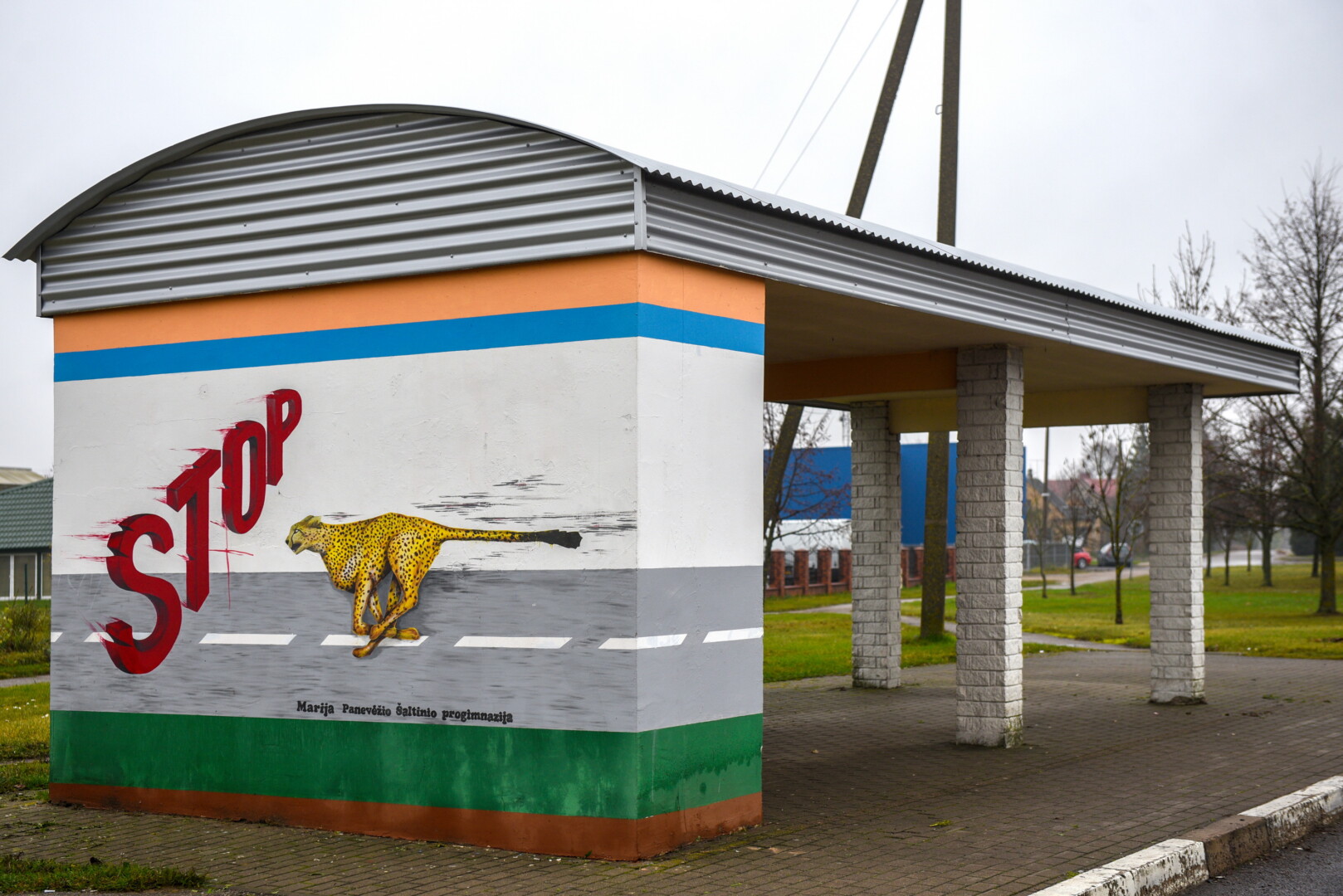 Automobilių kelių direkcijos inicijuoto piešinių konkurso „Saugus eismas kelyje 2022“ nugalėtojų autoriniai darbai jau baigti perpiešti ant šešių autobusų stotelių paviljonų skirtinguose Lietuvos rajonuose.