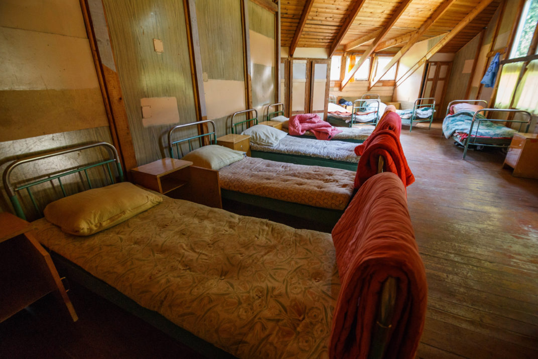 Vaikai miega kaip kareivinėse viena šalia kitos surikiuotose metalinėse lovose su spyruoklėmis – vargu ar dar kur būtų galima pamatyti tokį sovietmečio palikimą. Nors patalai kiekvienam išduodami švarūs, matyti, kad jie skaičiuoja ne vieną dešimtmetį, vatinės antklodės ir čiužiniai čia dar nuo stovyklavietės įkūrimo laikų.