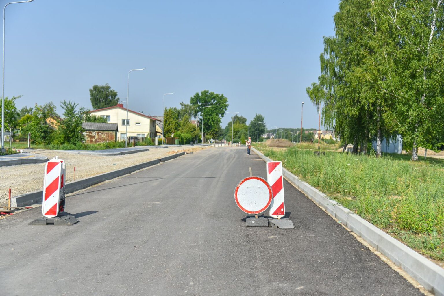 O štai atnaujinta Kėdainių gatve automobiliai jau važiuoja. Šalia nutiestu pėsčiųjų ir dviračių taku vakar net pačiu karštymečiu buvo matyti ir dviratininkų, ir pėstute žengiančių.