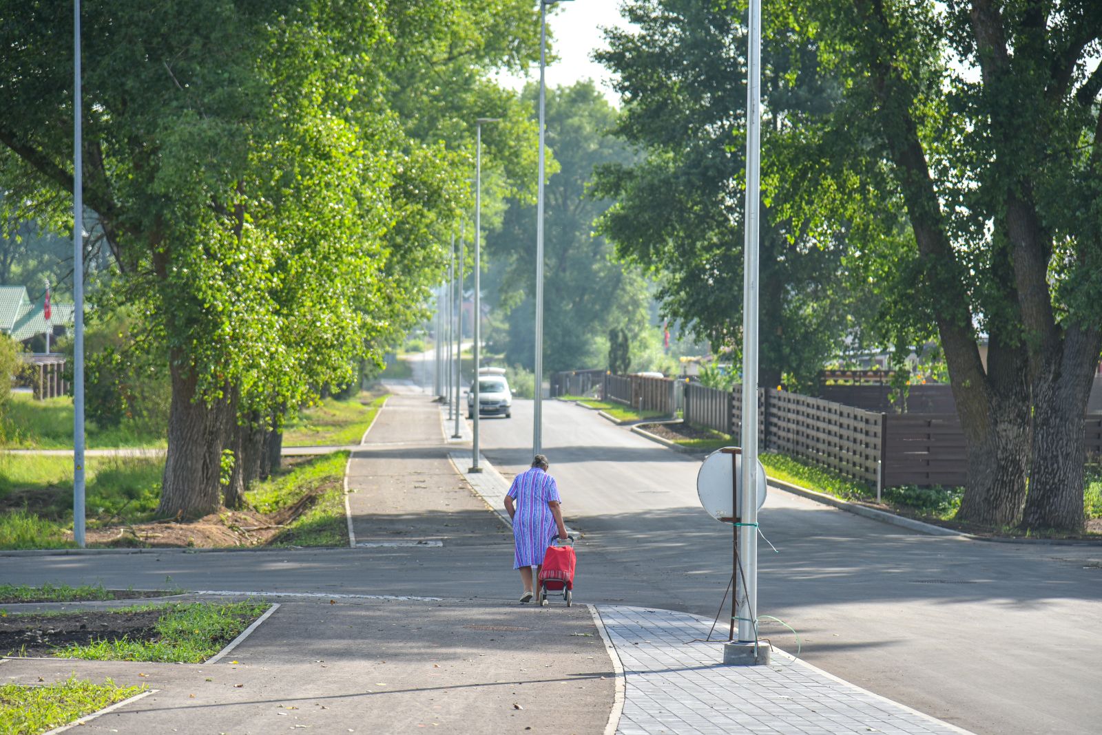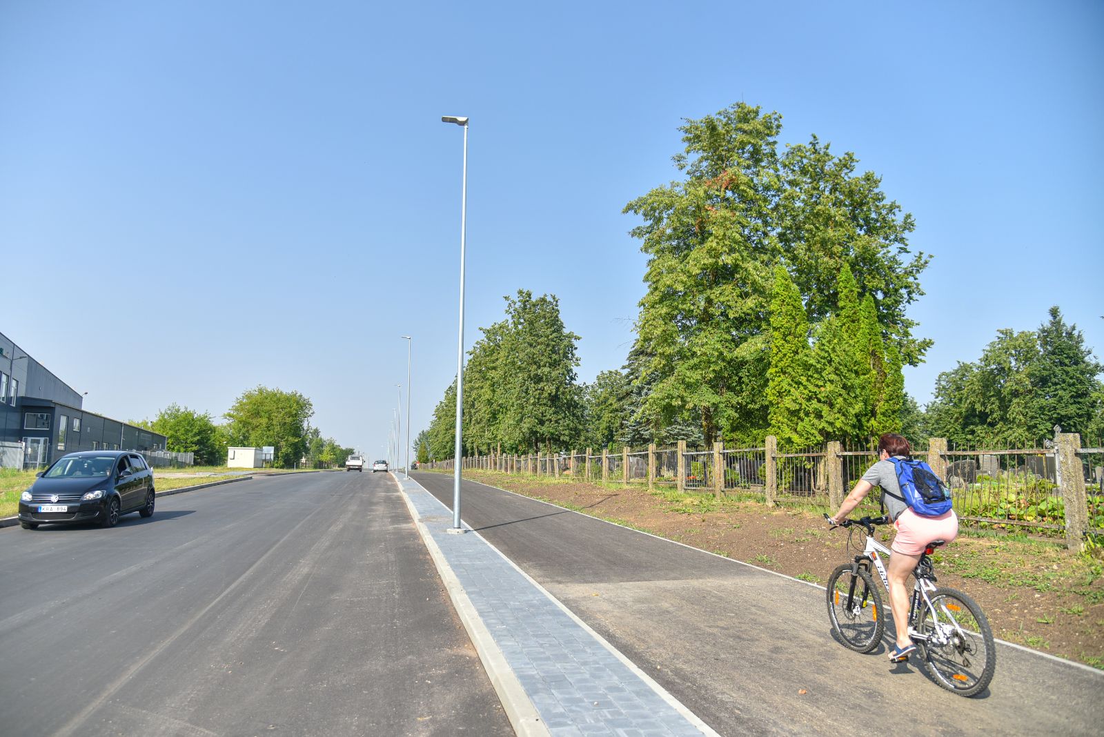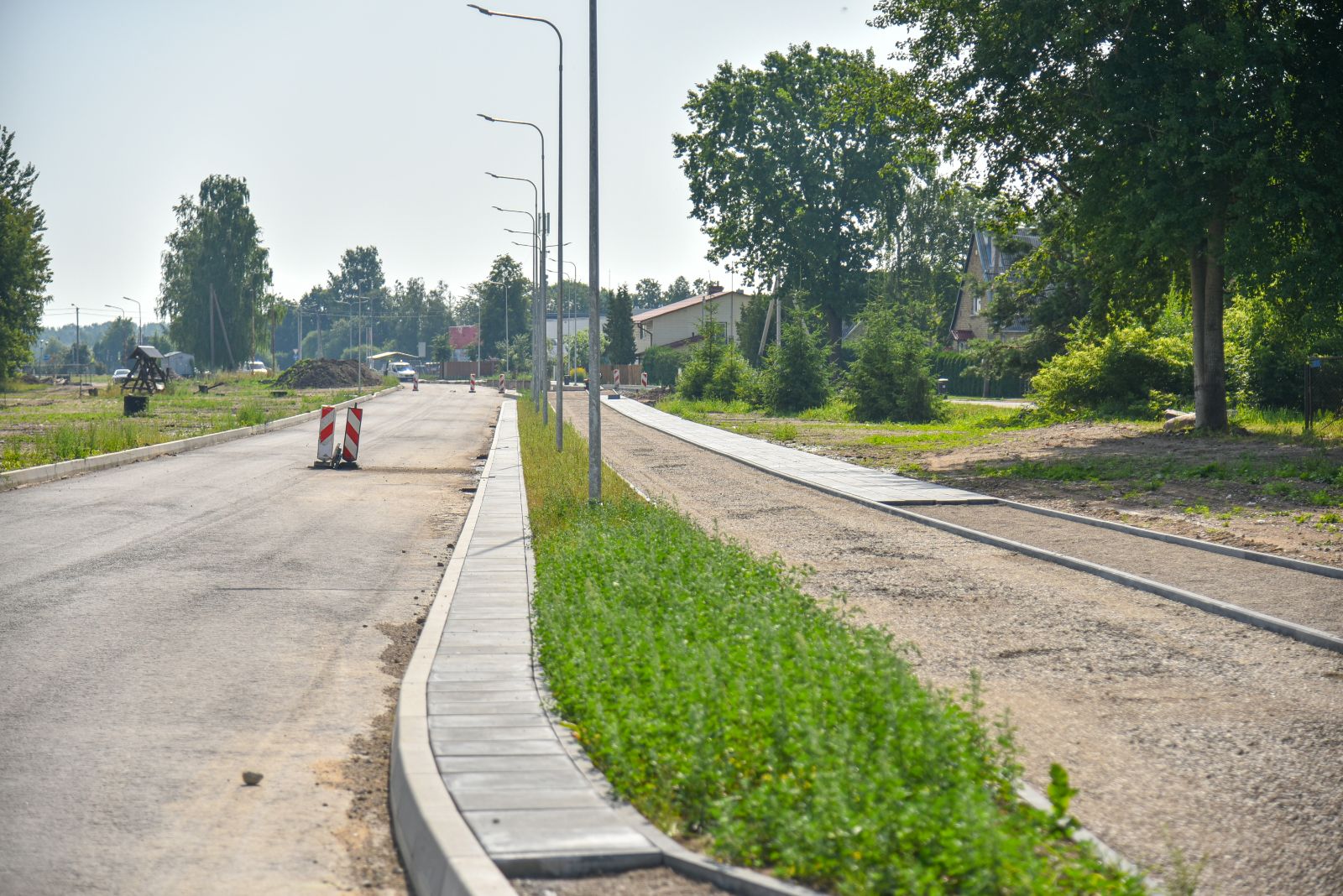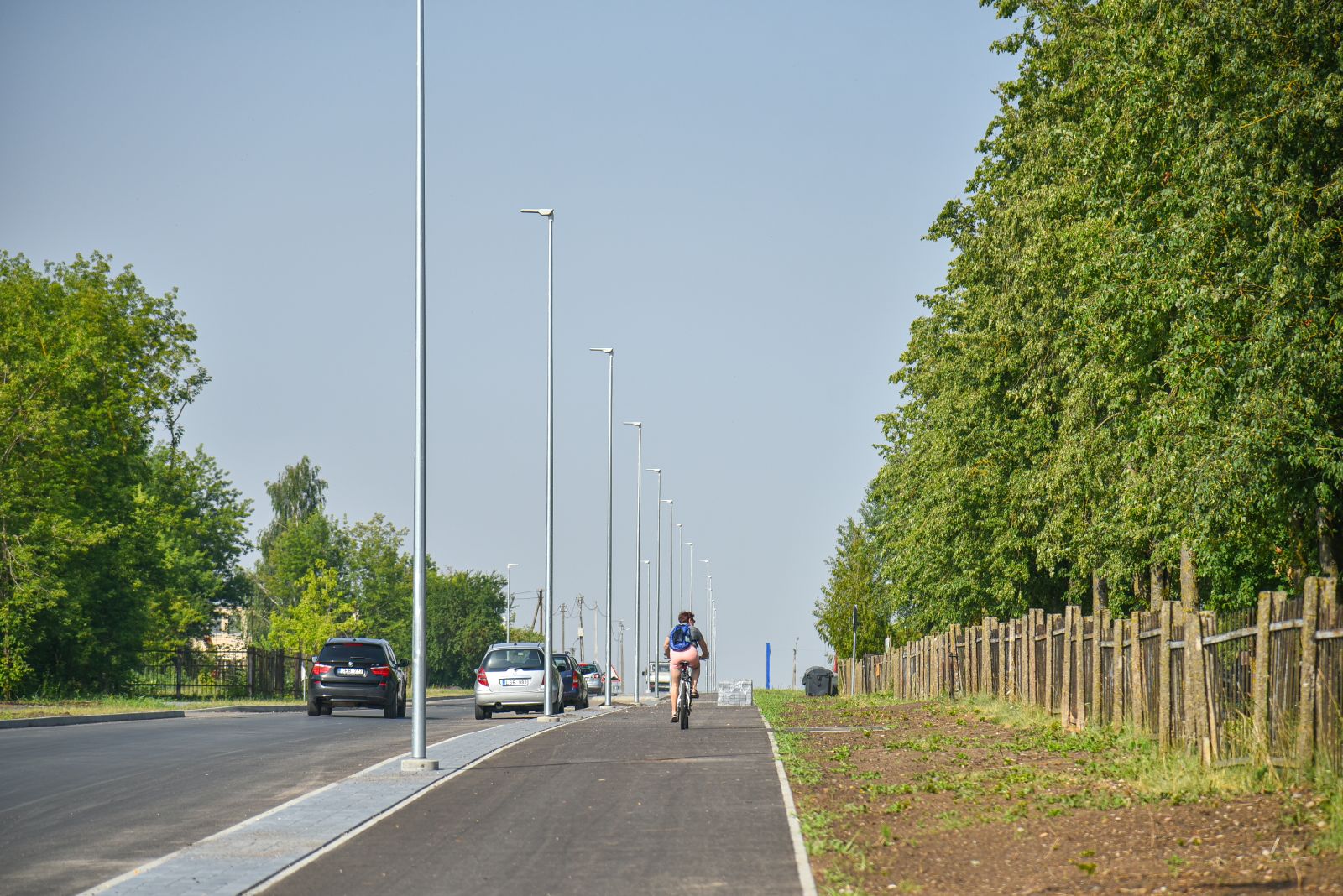 O štai atnaujinta Kėdainių gatve automobiliai jau važiuoja. Šalia nutiestu pėsčiųjų ir dviračių taku vakar net pačiu karštymečiu buvo matyti ir dviratininkų, ir pėstute žengiančių.