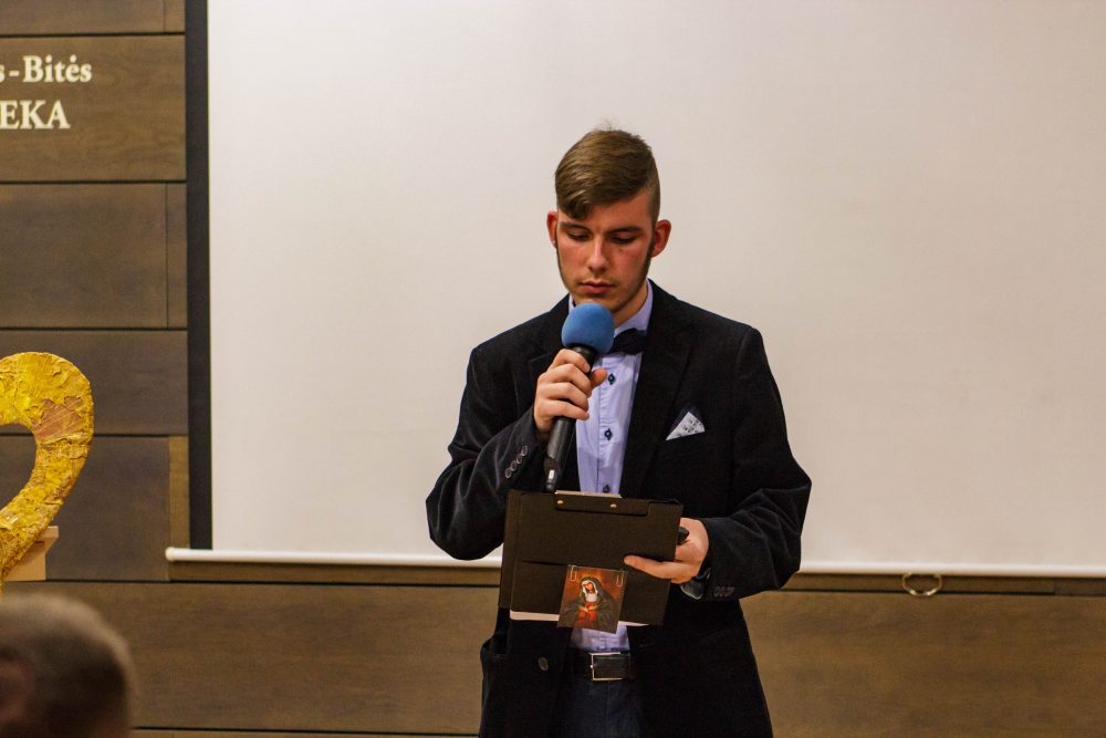 Apie toleranciją istoriniu aspektu papasakojo mokyklos mokinių tarybos pirmininkė Kamilė Baladziedaitė. Ji priminė, jog tolerancija visų pirma yra pakanta, pagarba kitokiai nuomonei, pažiūroms ar įsitikinimams.