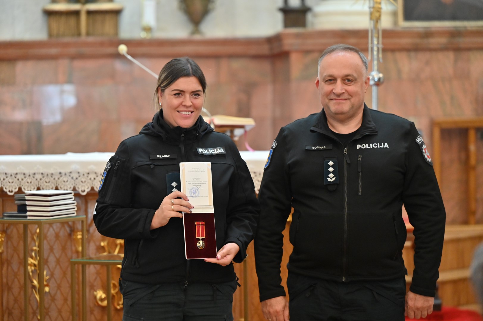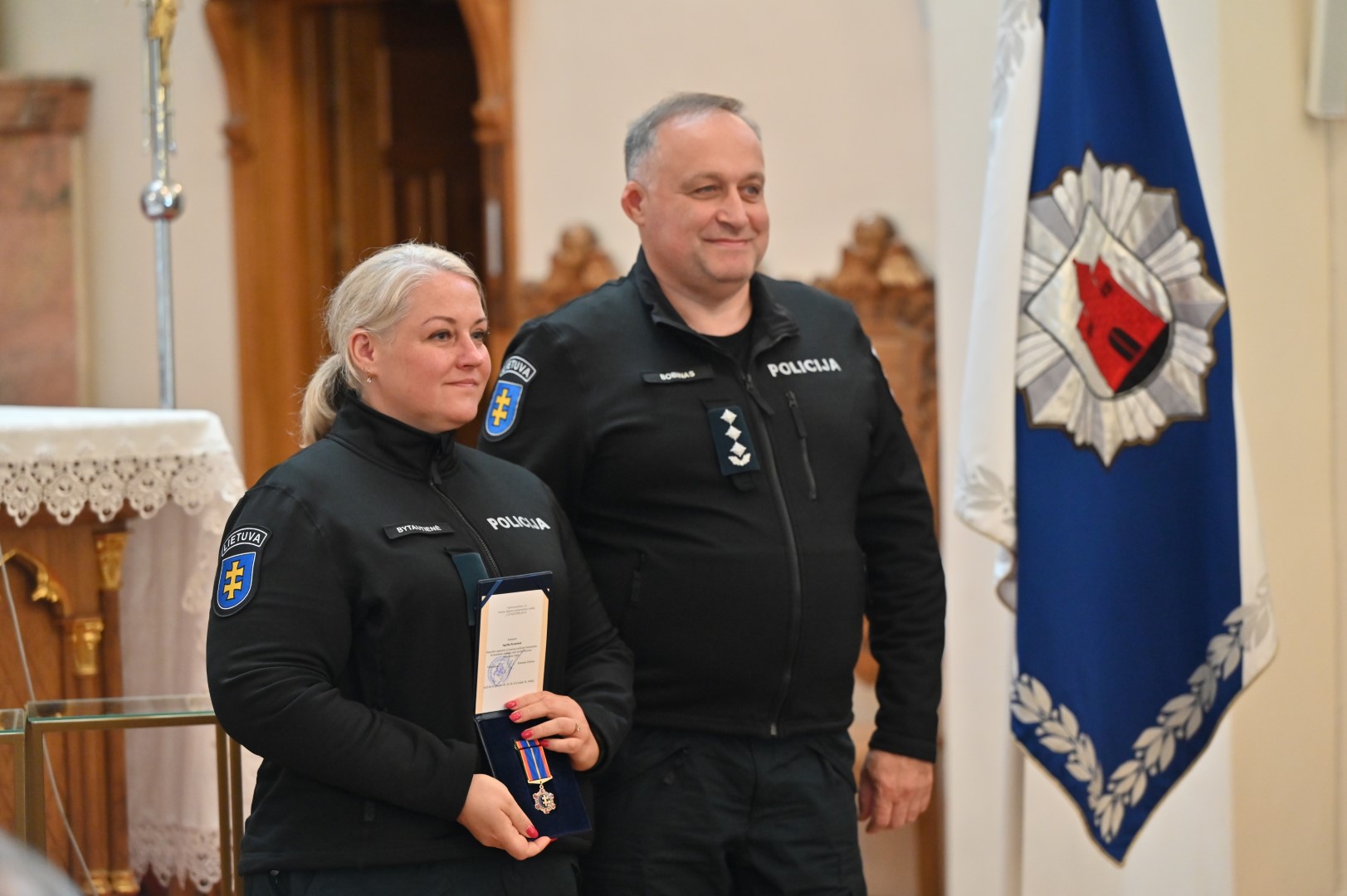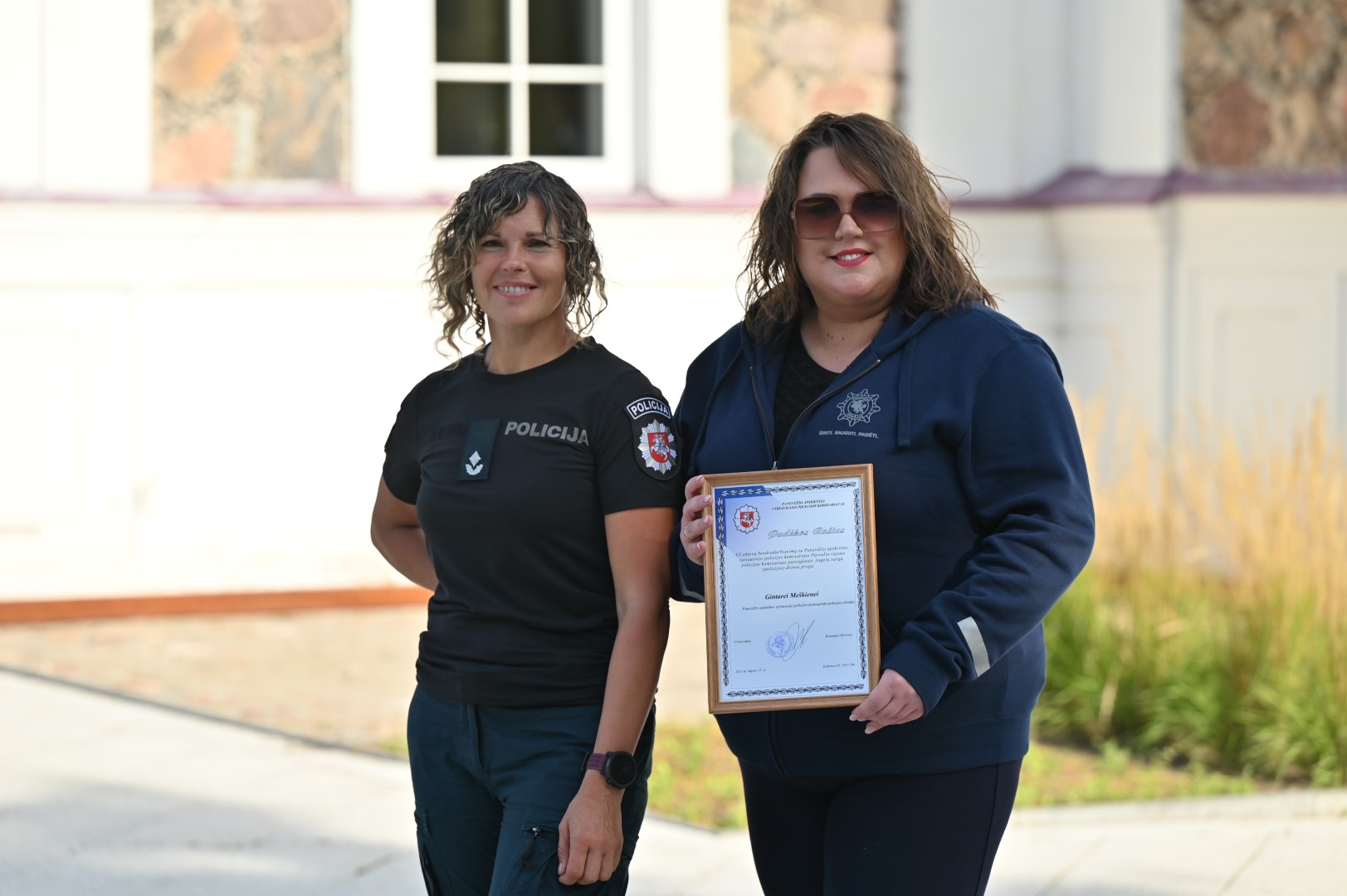 Už nepriekaištingą ir pavyzdingą tarnybinių pareigų atlikimą mero padėkomis apdovanotos Panevėžio apskrities vyriausiojo policijos komisariato Panevėžio miesto ir rajono policijos komisariato Reagavimo skyriaus 2-ojo poskyrio vyresnioji tyrėja Ernesta Petraitė bei Veiklos skyriaus vyresnioji tyrėja Gintarė Vilniškytė.