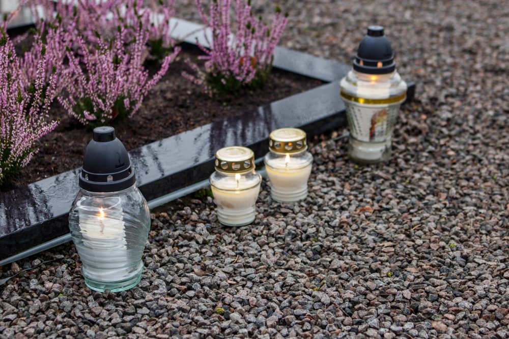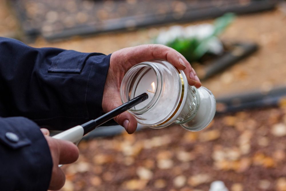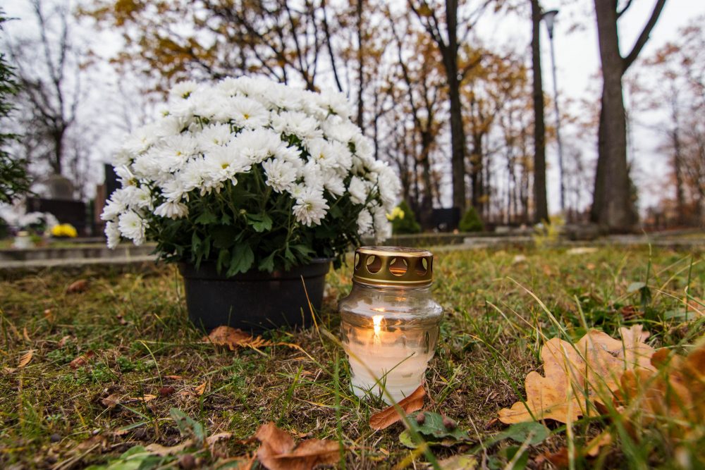 Su žvakele ir gėlės žiedu pas išėjusiuosius