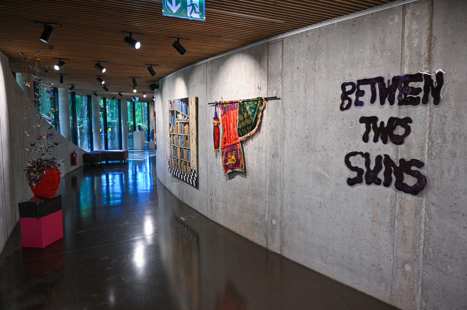 Parodoje „Tarp dviejų saulių“ atsiskleidžia skirtingos menininkų patirtys ir technikos, akivaizdūs spalvų kontrastai.