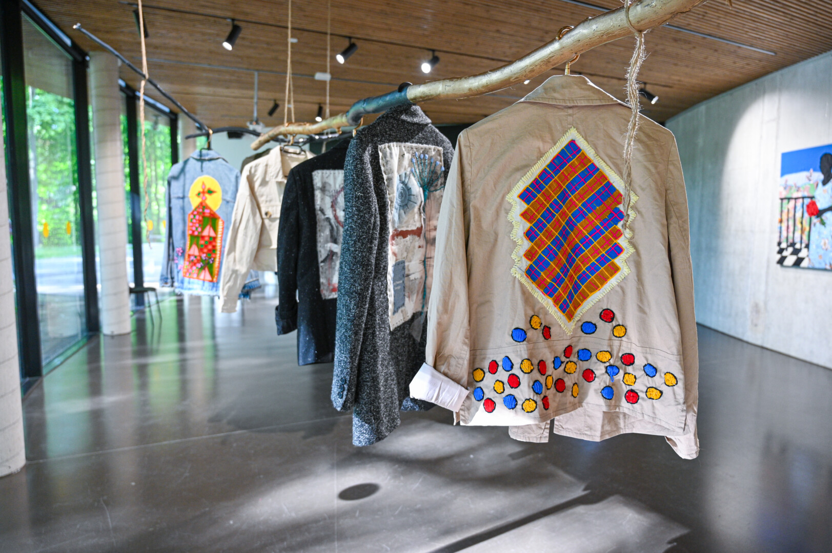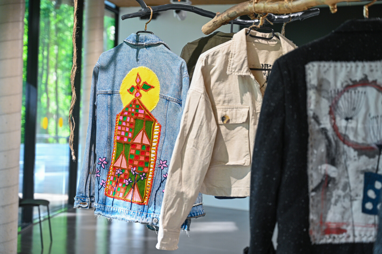 Parodoje menininkai pristato ir dėvėtus drabužius, dekoruotus rankomis prisiūtomis aplikacijomis.
