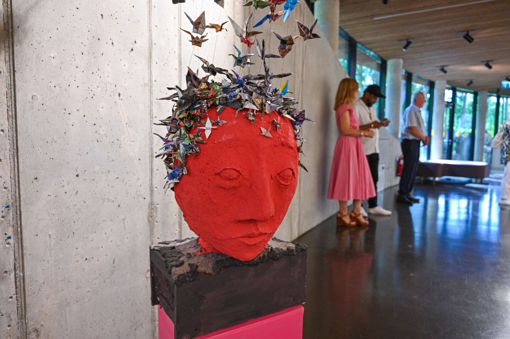 I. Trencė parodoje pirmą kartą pristato ryškiai raudoną darbą. Jame vaizduoja žmogaus mintis ir idėjas.