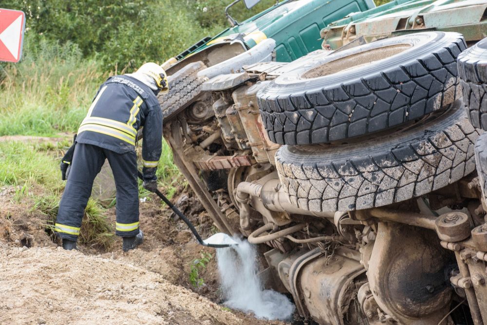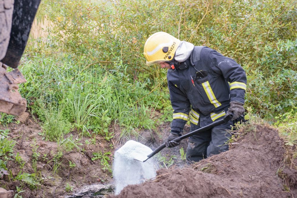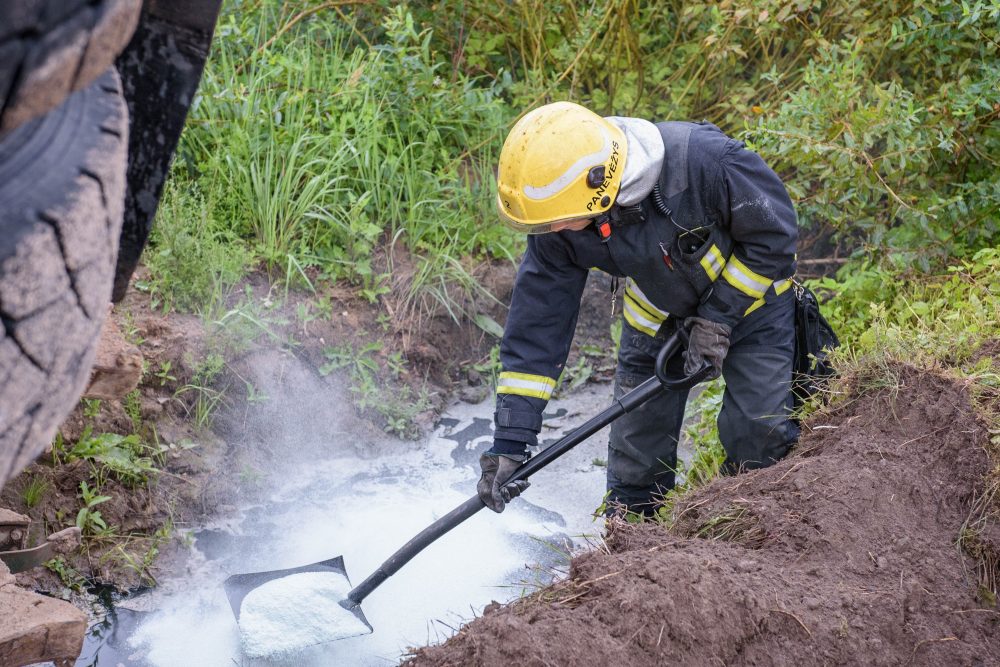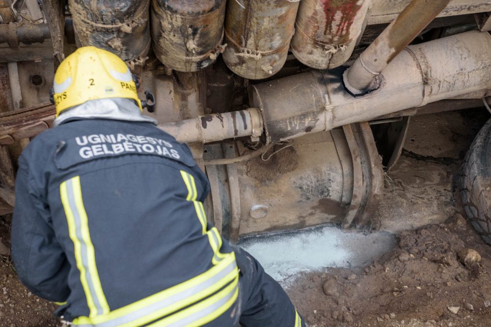 Teko likviduoti ir incidento metu į griovį išsiliejusius degalus bei techninius skysčius.