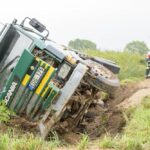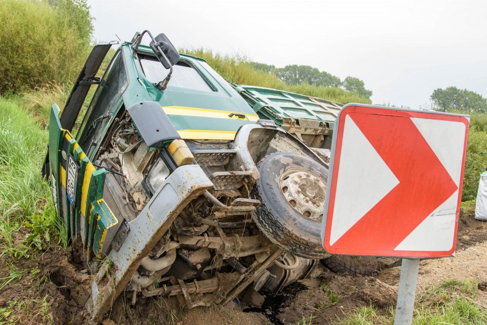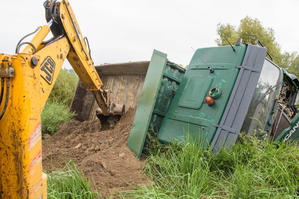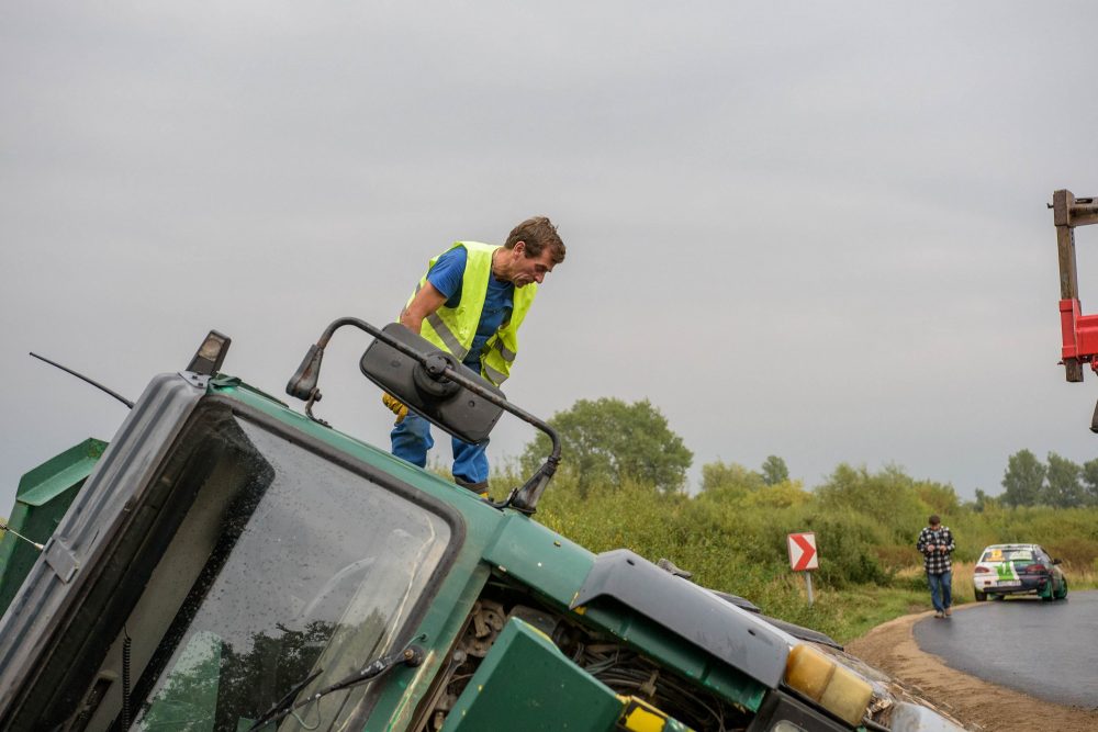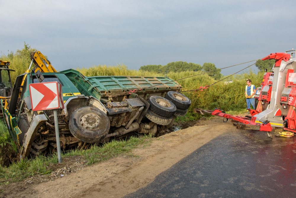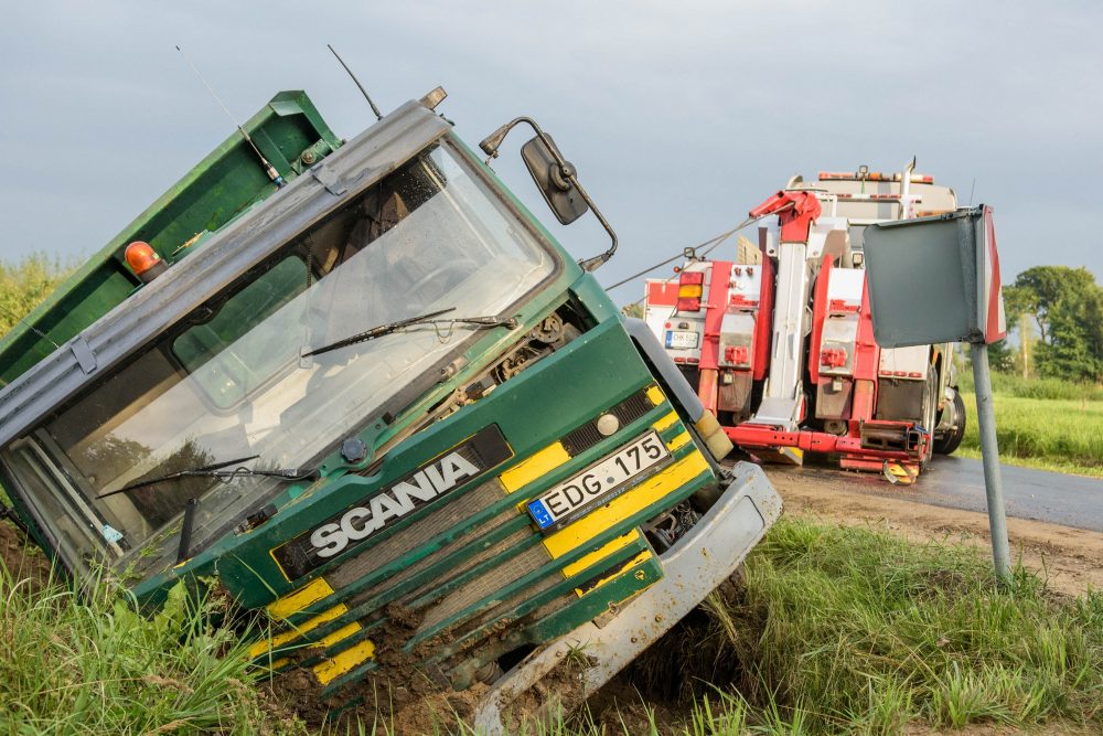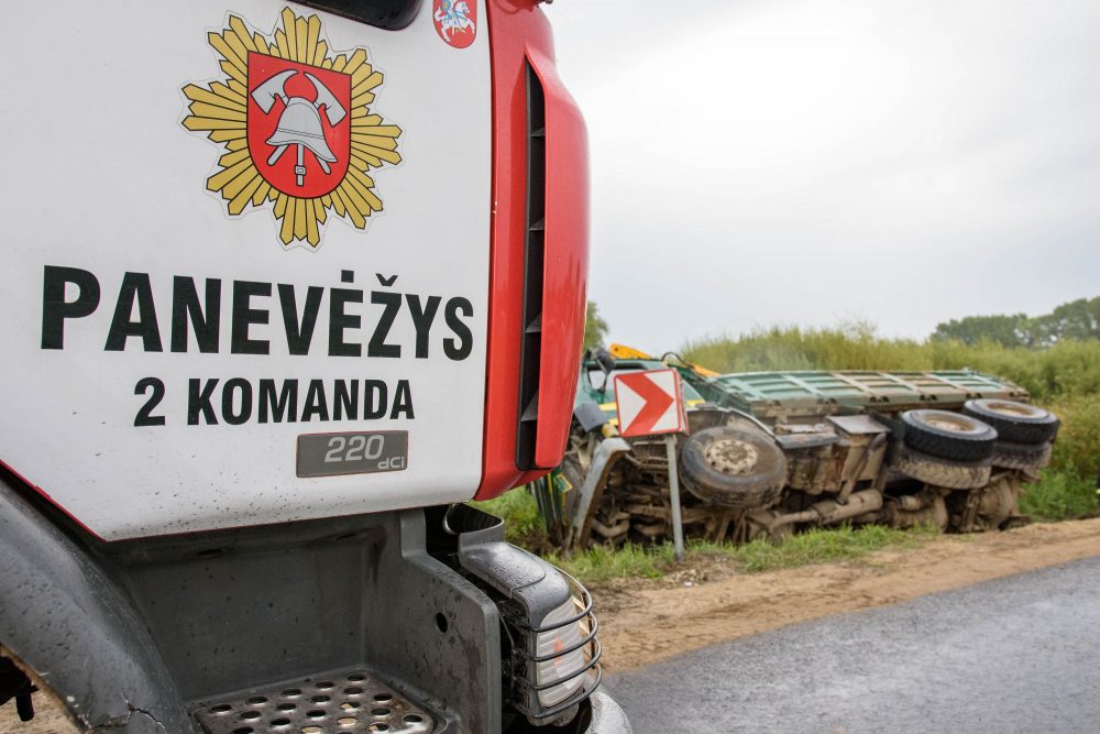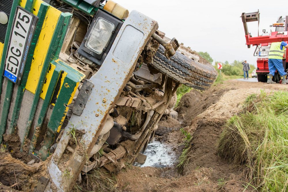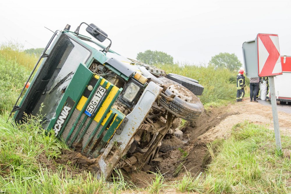 Vairuotojui per arti privažiavus minkštą kelkraštį, šis neatlaikė žemėmis prikrauto sunkvežimio svorio. Stambiagabaritė transporto priemonė vertėsi ant šono į griovį.