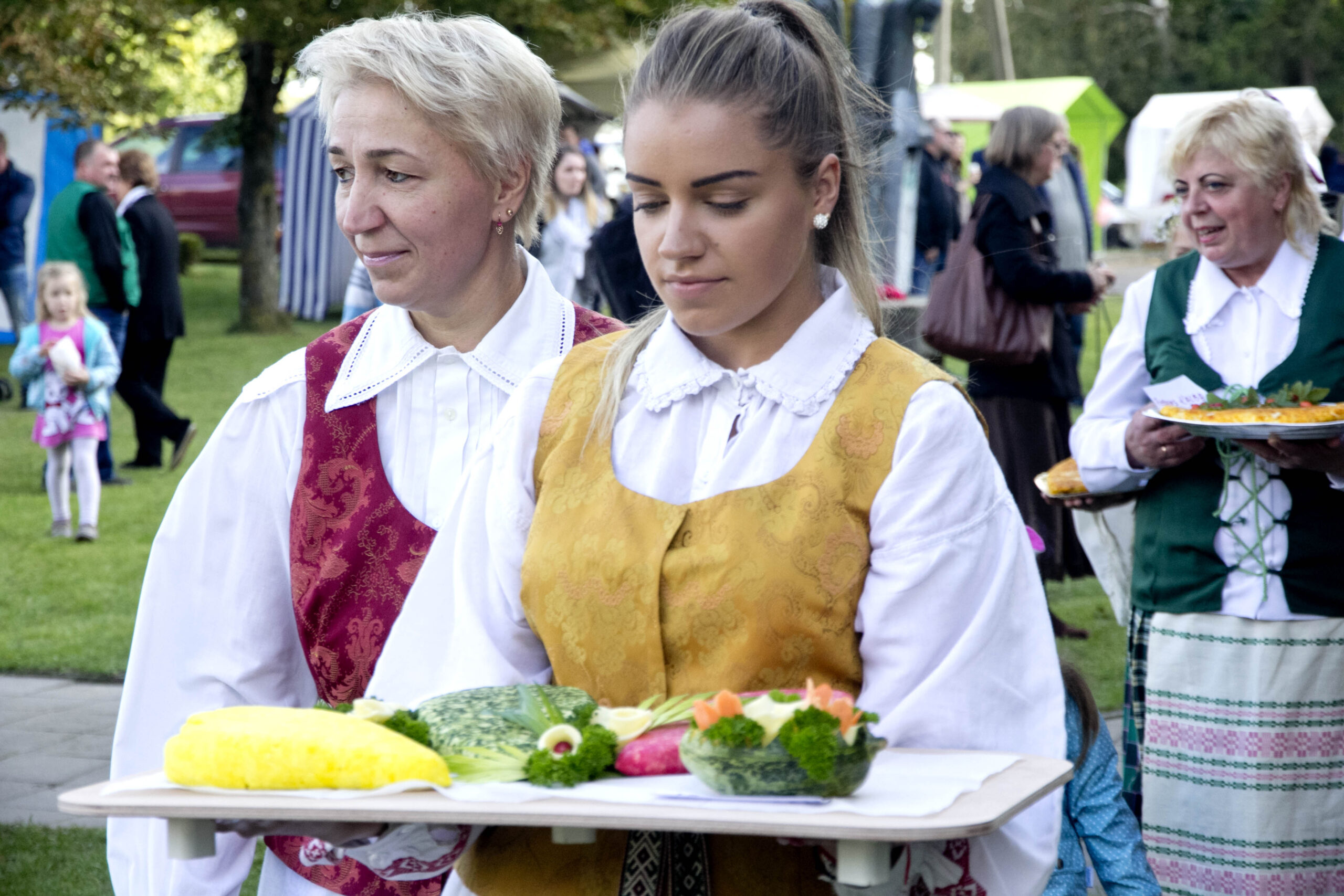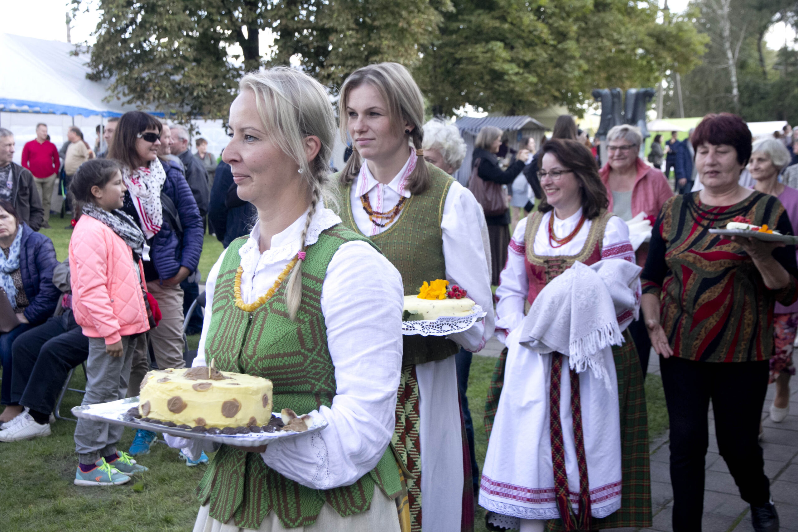 Tradiciniame parade žygiavo tautiniais kostiumais pasipuošusios sūrininkės – taip buvo pažymėti Tautinio kostiumo metai, atkreiptas dėmesys į išskirtinai lietuvišką produktą.
