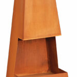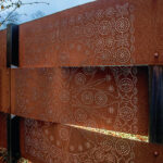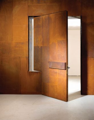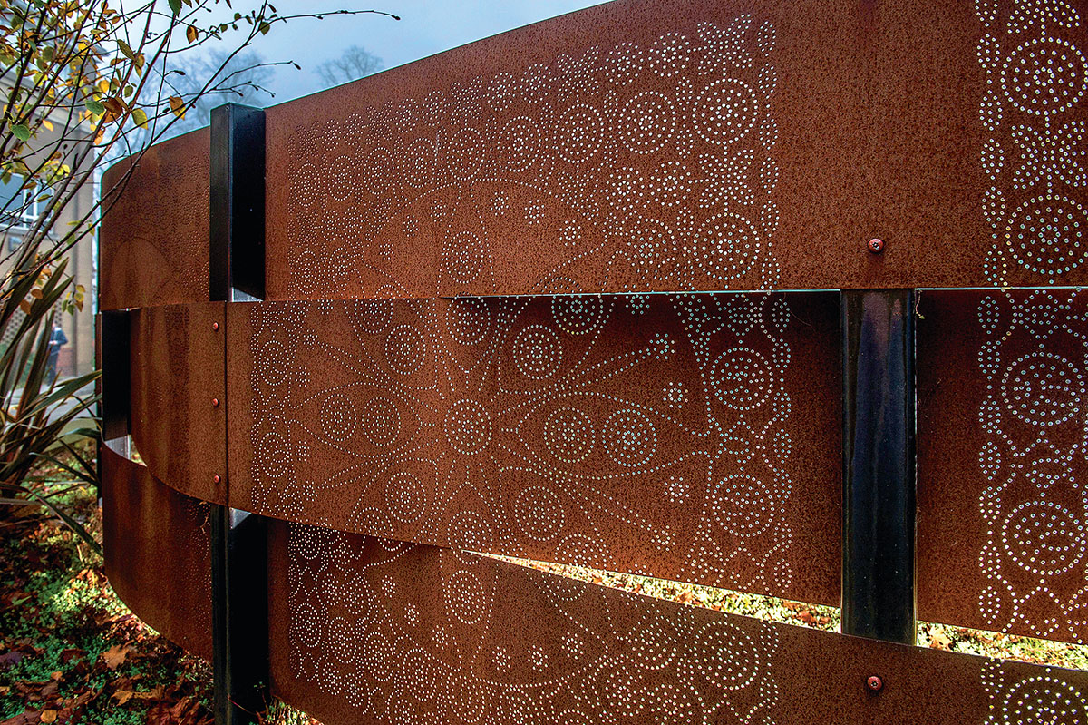 O kaipgi rūdys, paklausite jūs. Atsakymas – šios plieno plokštės yra apdorotos specialiu tirpalu „Rust Brown“. Šitaip paruoštas paviršius, veikiamas atmosferos, pasidengia specifiniu rūdims būdingo atspalvio oksidų sluoksniu – patina. Ji yra labai tanki, beveik nelaidi deguoniui, visiškai sandari, todėl ilgaamžė. Atrodydama kaip rūdys, iš tikro ji stabdo korozijos procesą, todėl, laikui bėgant, apsauginis plieno sluoksnis nė kiek neplonėja.