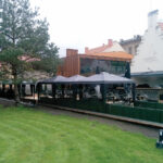 Rūdintas plienas „Cor-Ten“ Lietuvos architektūros padangėje jau tapo visateise išraiškos priemone, o gal net ir drąsios architektūrinės kalbos požymiu. Tarkim, Kaune jo jau galima matyti Žaliakalnyje, Vičiūnuose, V. Putvinskio g., viešbučio „Europa Royale Kaunas“ komplekse. Į Kauno senamiestį jis irgi pateko – panaudotas šiuolaikiško restorano „Pilies sodas“ dviaukščio korpuso fasado apdailai.