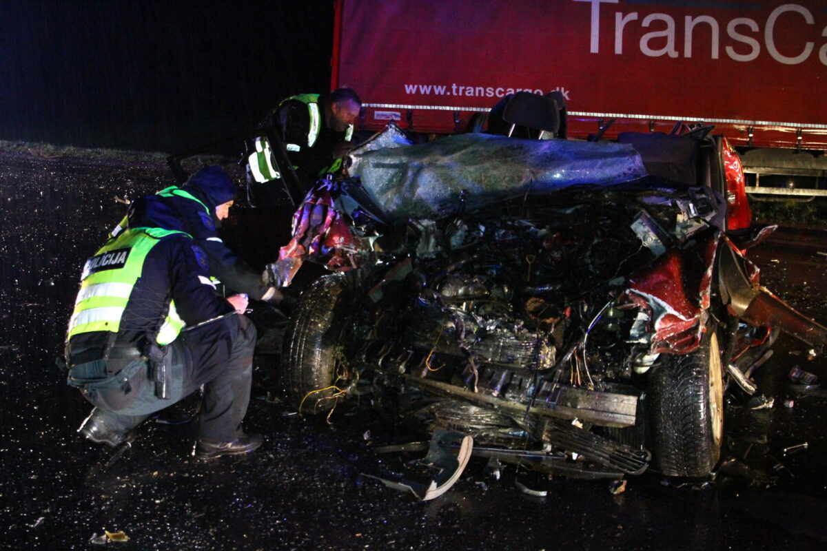 „Volkswagen“ vairuotoją iš automobilio teko vaduoti ugniagesiams. 48-erių vyro gyvybės išgelbėti nebepavyko. Vilkiko, vykusio iš Rygos į Kauną, trisdešimtmetis vairuotojas nesužalotas.