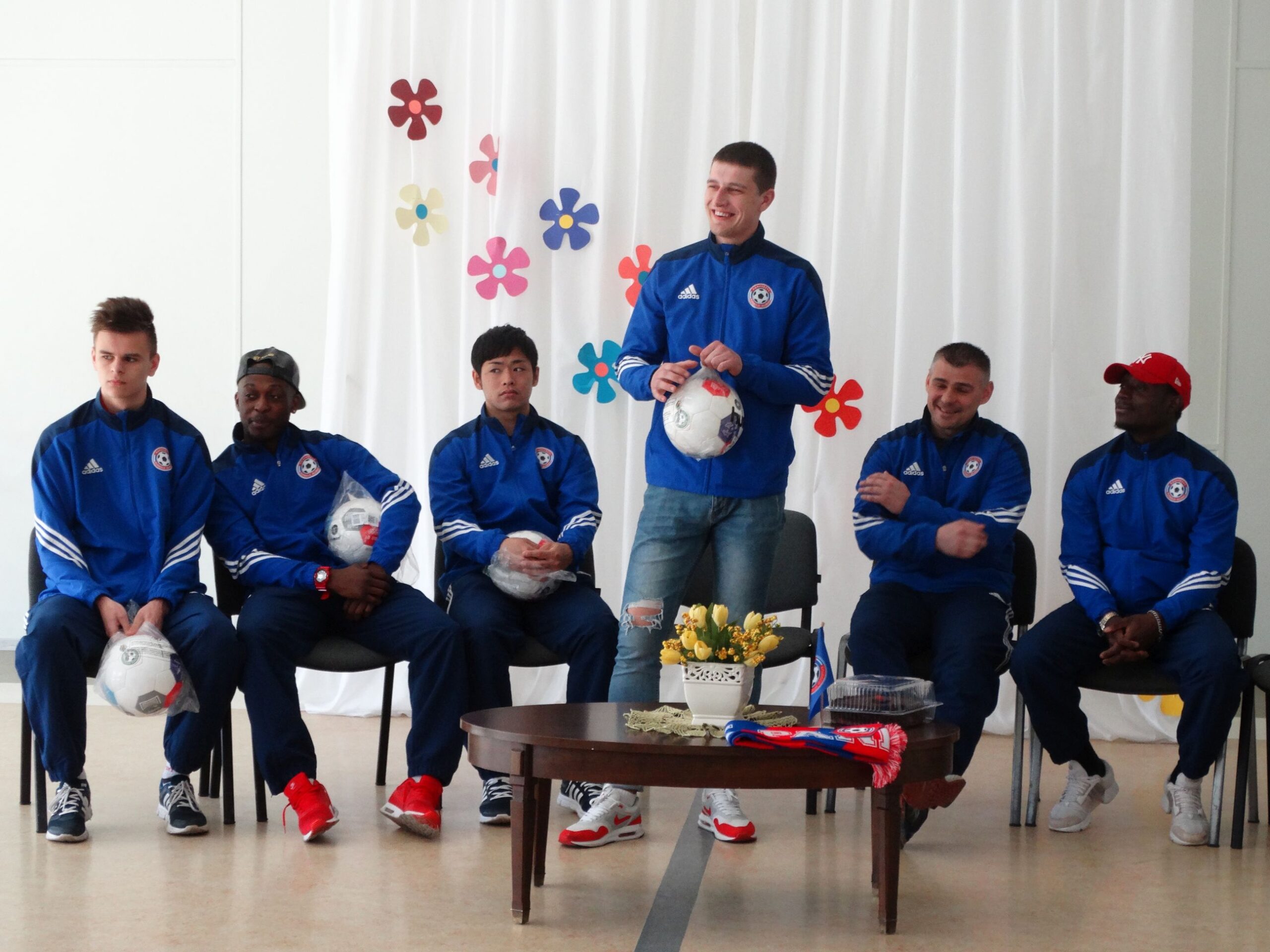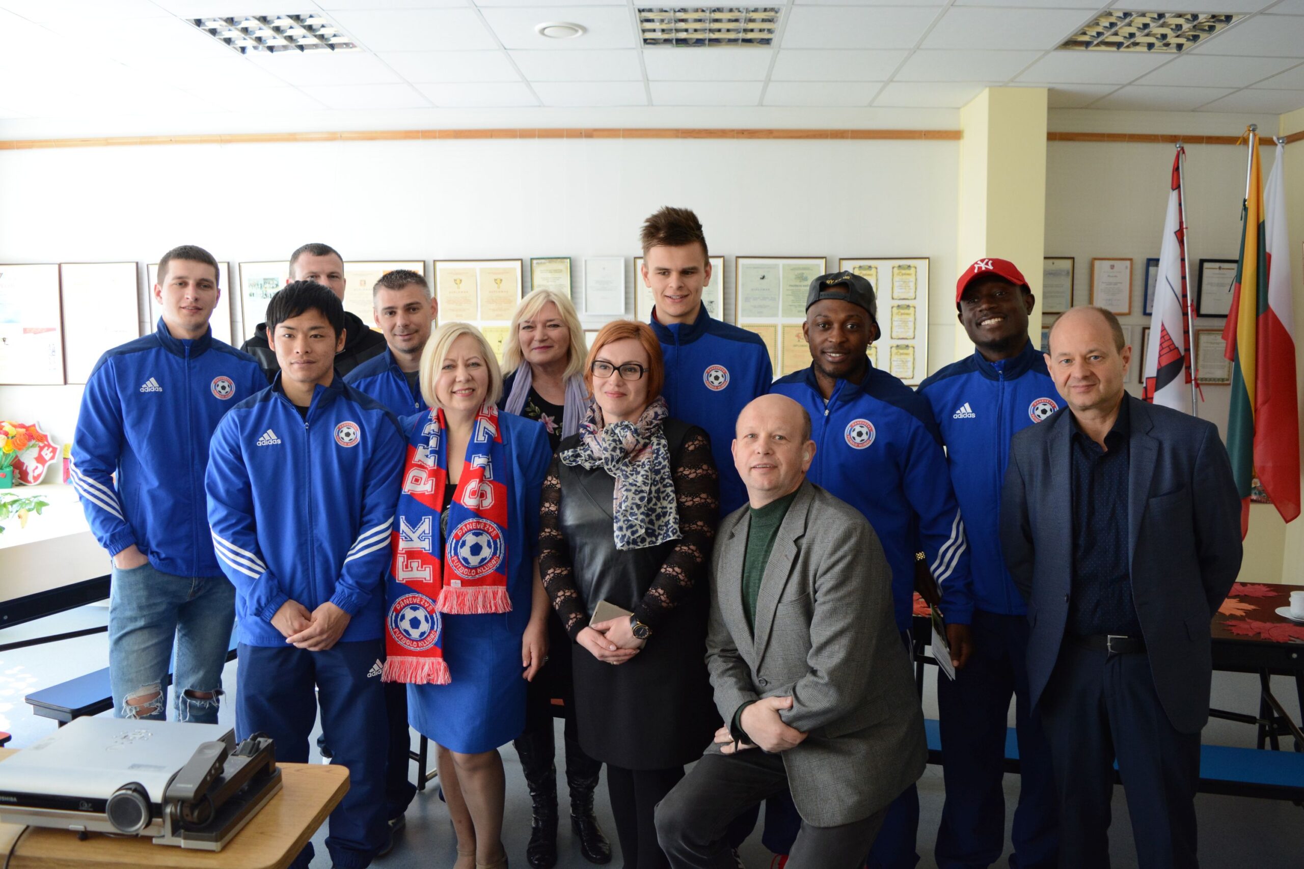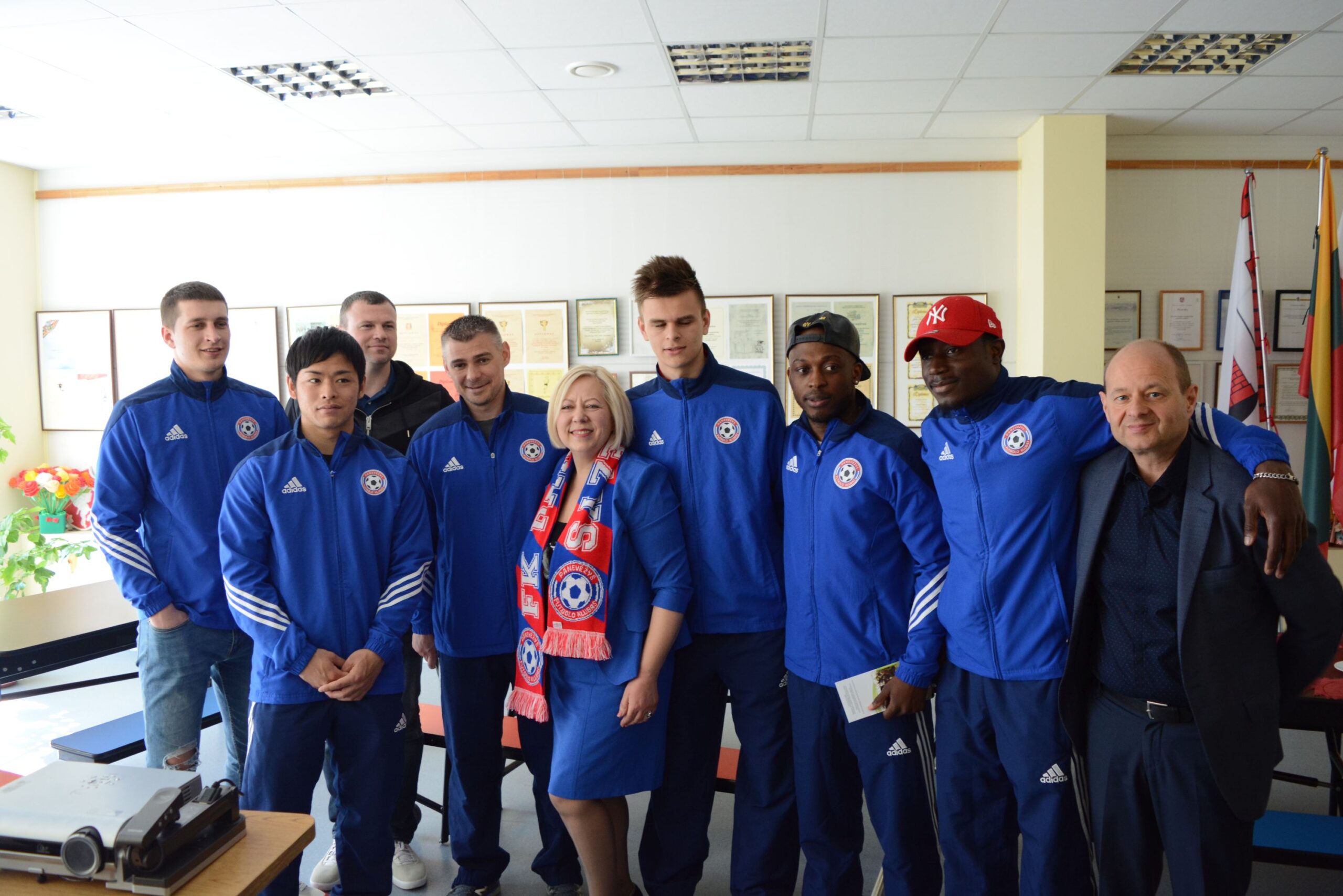 Į svečius atvyko klubo direktorius Bronius Vaitiekūnas, sporto direktorius Dainius Gleveckas, vyriausiasis treneris ir žaidėjas bei kapitonas Mantas Savėnas, puolėjas Edvardas Tamulevičius, ukrainietis gynėjas Yura Podo, saugas japonas Tsubasa Mitani ir kamerūnietis Rigobertas Songas bei Ganos ir Italijos pilietybes turintis puolėjas Charlis Atsina.