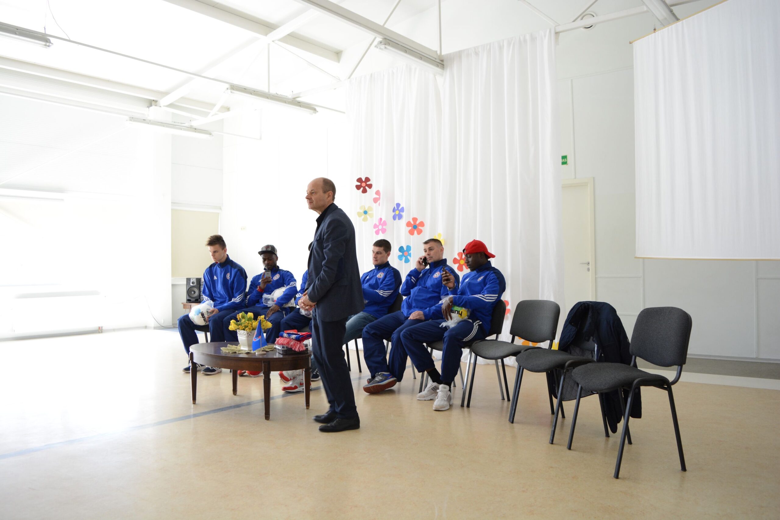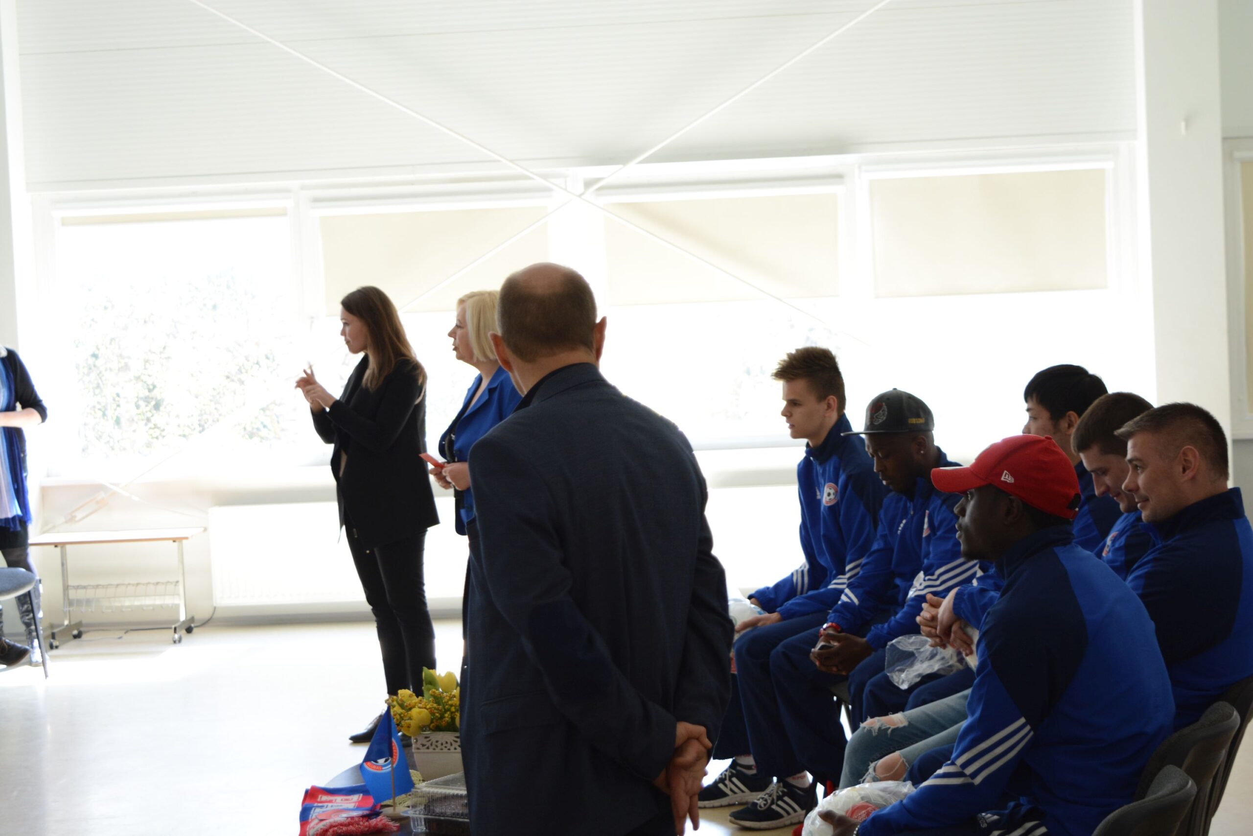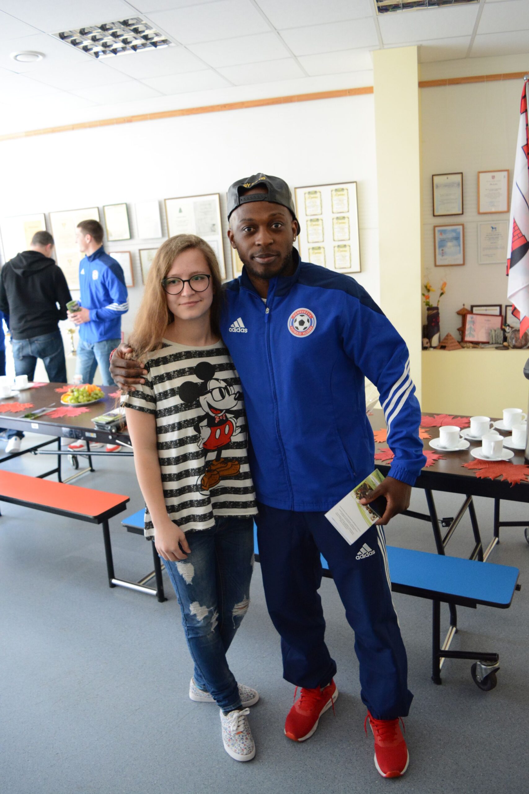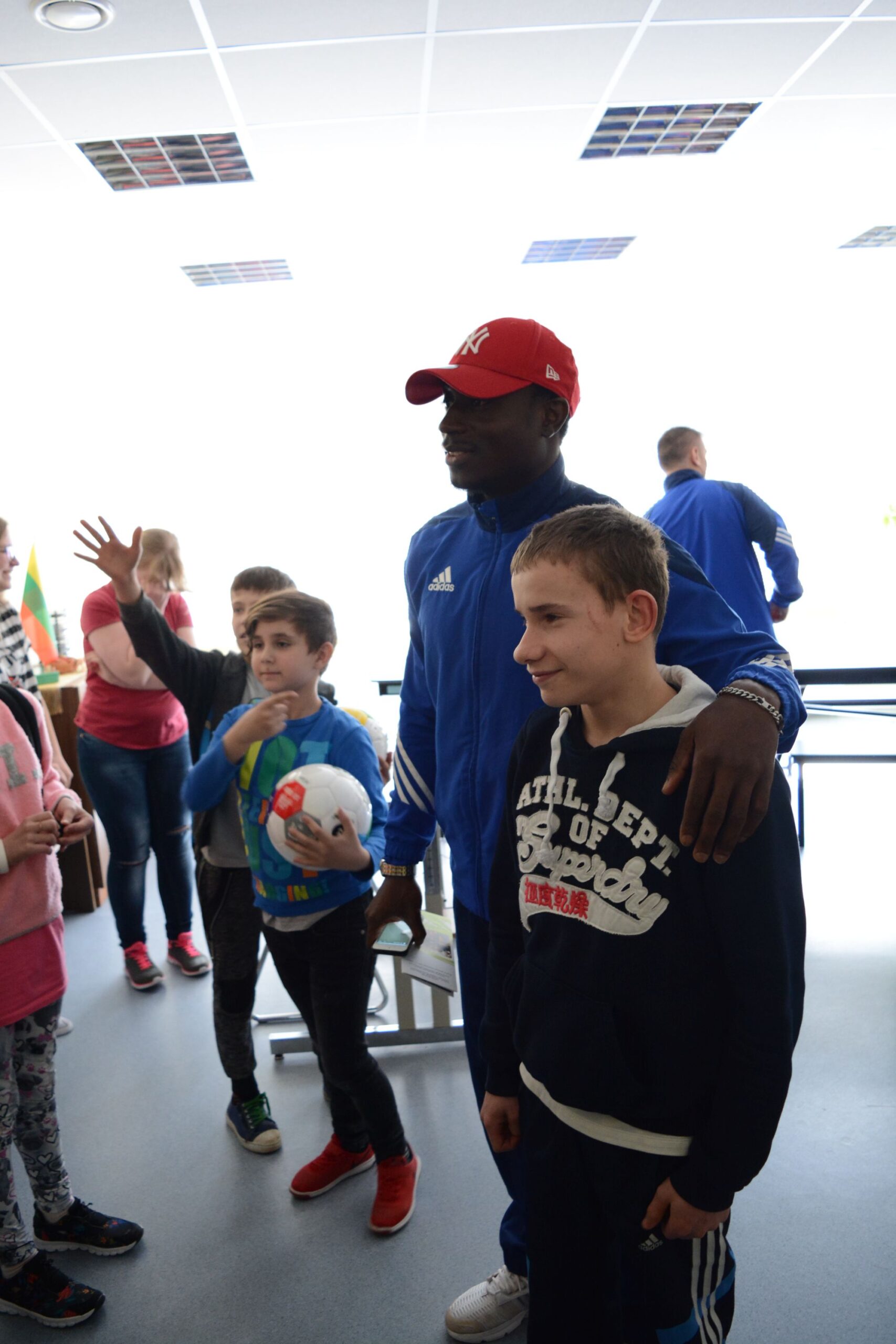 Pratęsę susitikimą prie arbatos puodelio, svečiai apžiūrėjo mokyklos patalpas: salę, kabinetus, muziejų, bendrabutį, valgyklą, bendravo su mokiniais, domėjosi jų sportiniais pasiekimais, mokėsi lietuvių gestų kalbos, fotografavosi atminimui, žemėlapiuose ieškojo savo šalių. Mokiniai greta futbolininkų nesivaržė, drąsiai spaudė rankas, kalbino ir svečius lydėjo po visas mokyklos patalpas.
