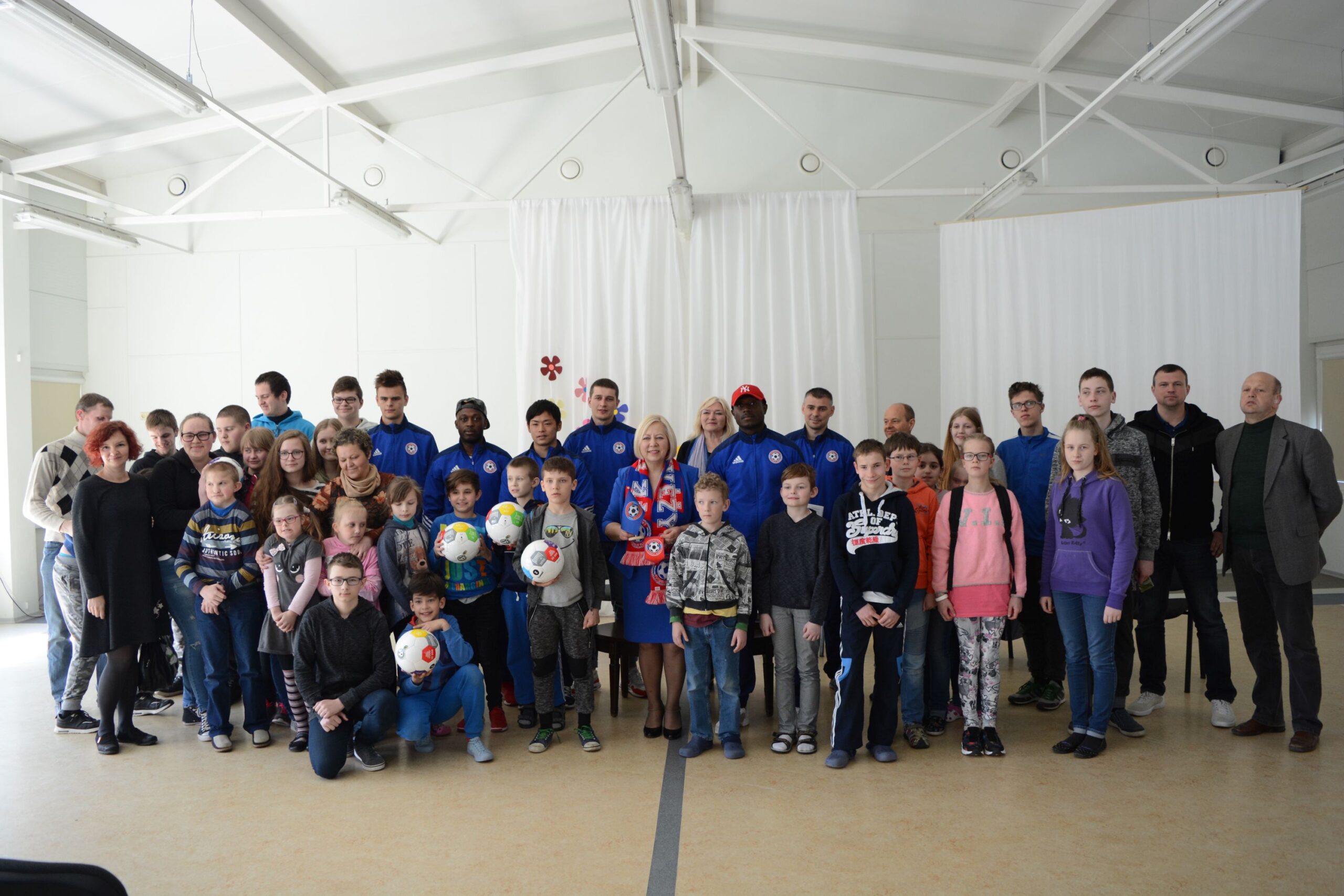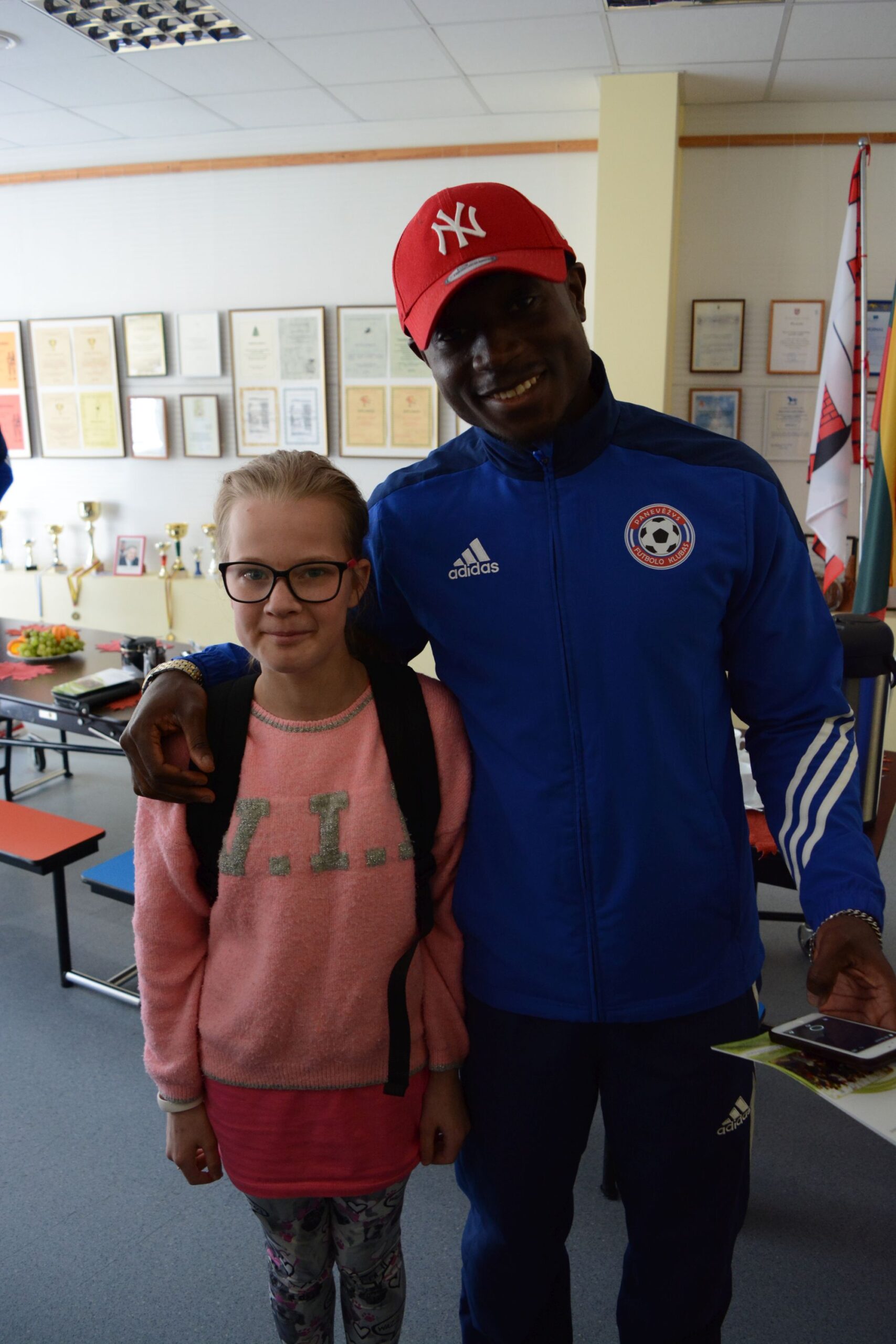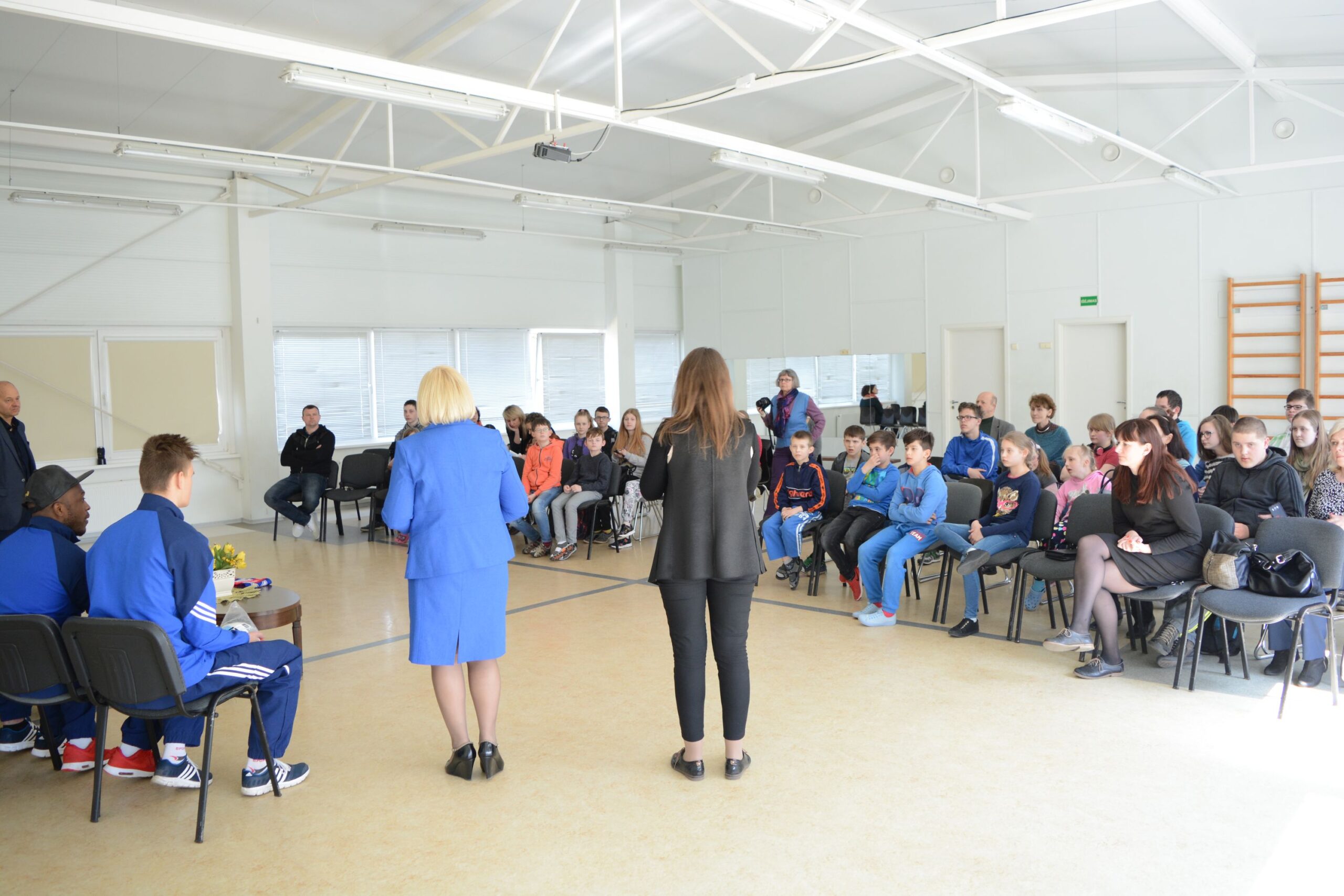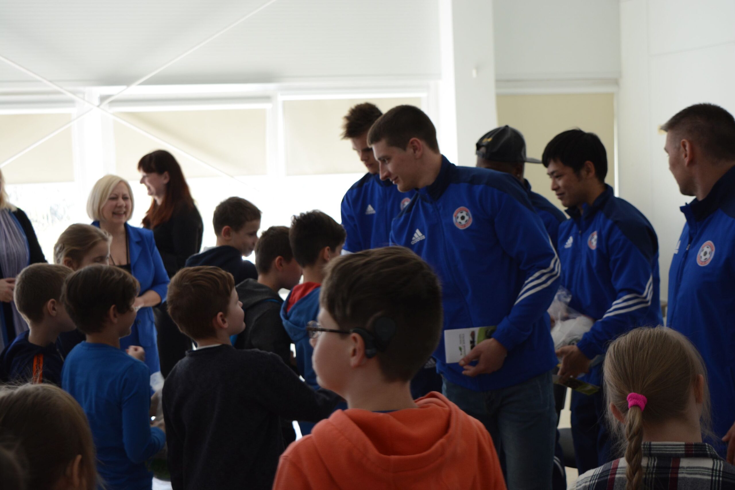 Kūno kultūros mokytoja metodininkė Vijoleta Vanagienė džiaugėsi, kad mokykla dalyvavo projekte „Užauginkime Lietuvai Ronaldo“ ir laimėjo futbolo vartus bei kamuolius. Tačiau mokykla dar turi didžiulę svajonę įsigyti futbolo aikštelę. Daugelis mokinių ne tik lietuvių, bet ir anglų kalbomis klausinėjo svečių apie komandos sudėtį, čempionatą, klubo rėmėjus.