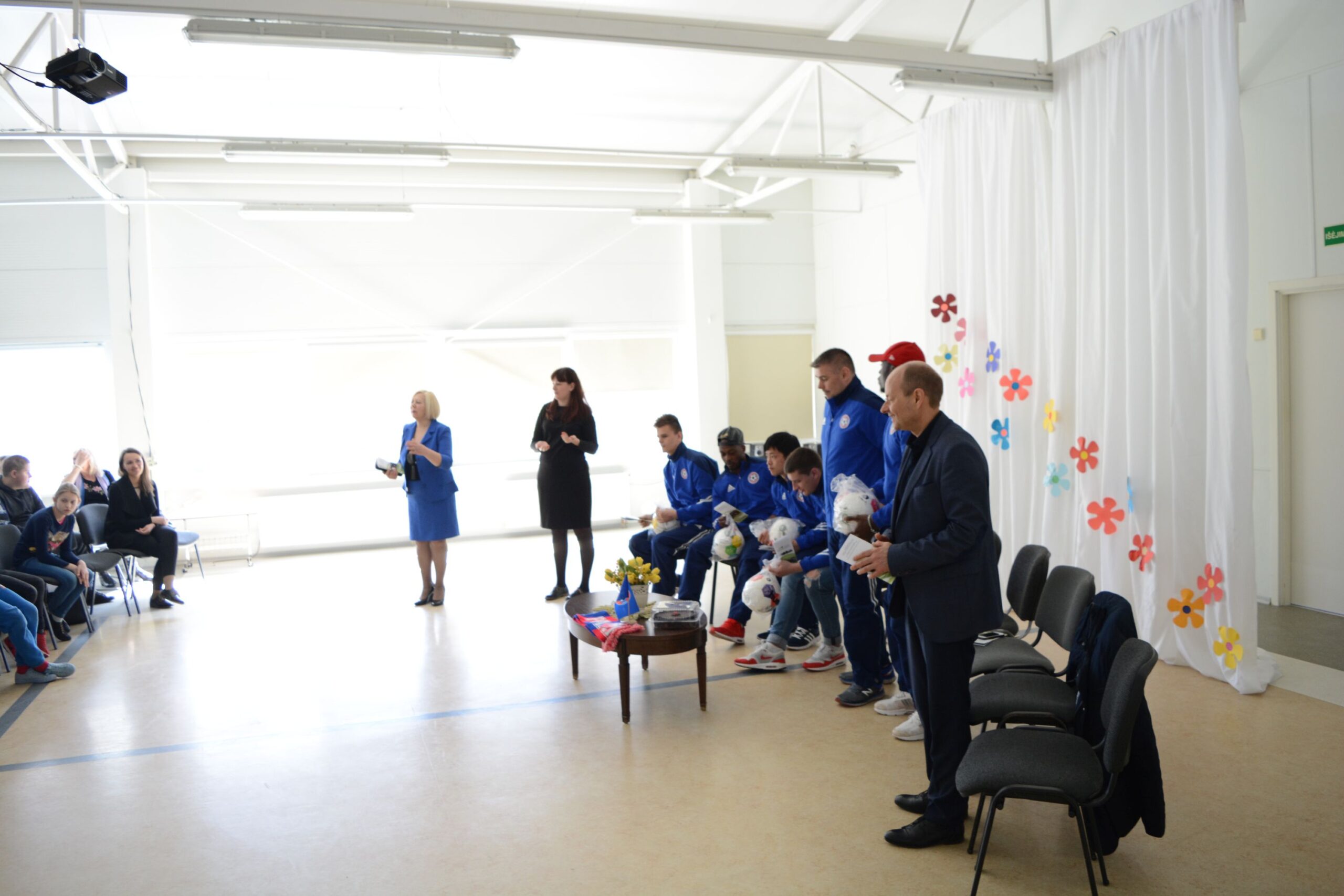 Svečiai neatvyko tuščiomis: mokiniams padovanojo futbolo kamuolių, su kuriais jie tuojau pat išbėgo žaisti, o mokyklai – FK „Panevėžys“ šaliką, gairelę, vėliavėlę ir didžiulį tortą. Mokykla visiems įteikė prisiminimui po lankstinuką, kad svečiai galėtų įdėmiau susipažinti su ugdymo specifika.