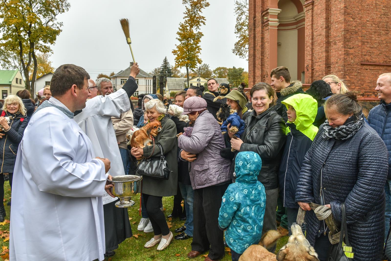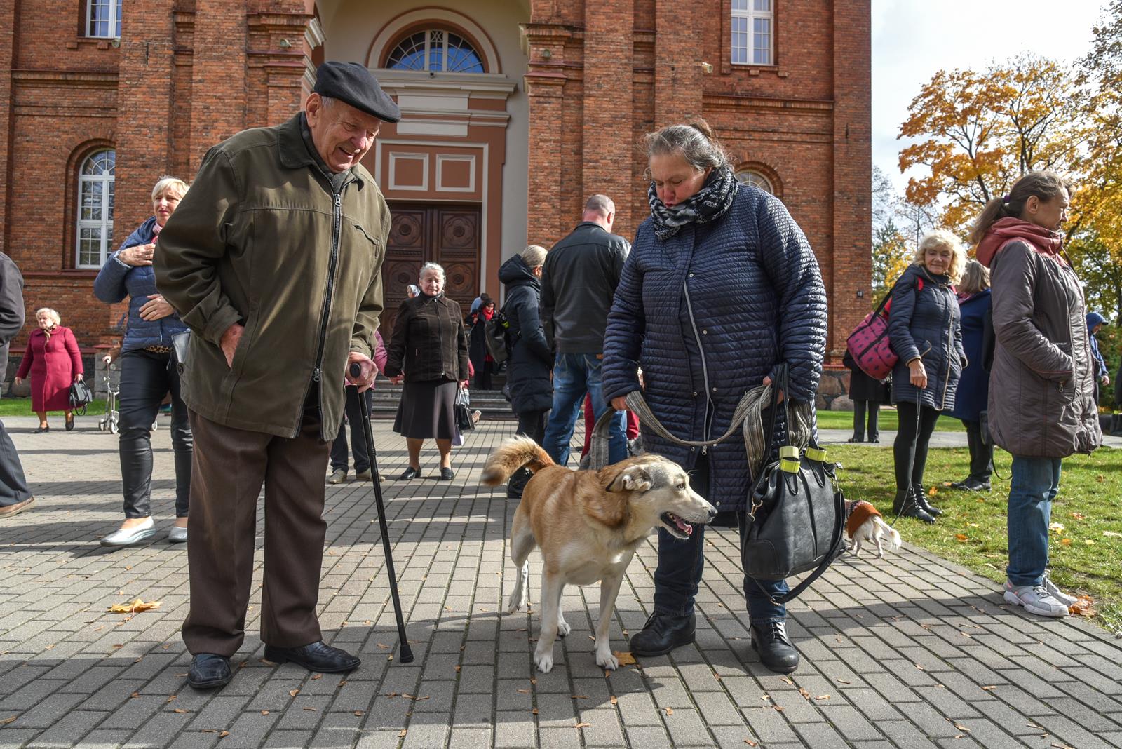 Į Šv. apaštalų Petro ir Povilo bažnyčios šventorių palaiminimo daugiausia atvesta šunų – įvairiausių dydžių ir veislių.