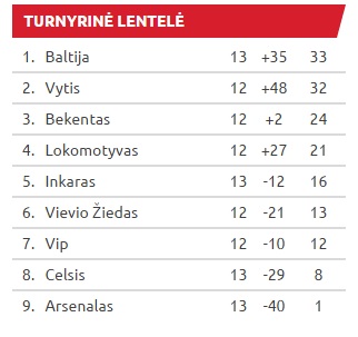 Dar viename turo mače Radviliškio „Lokomotyvas“ (21 tšk.) svečiuose 5:3 patiesė Kauno „Arsenalą“ (1 tšk.). Artimiausias rungtynes kovo 12 d. „Baltija“ žais Kaune su brazilų vedamu „Vyčiu“. Pirmoji kova Panevėžyje baigėsi taikiai 3:3. Tikėtina, kad ši kova ir lems Lietuvos čempionato nugalėtojų titulą. Pergalės atveju panevėžiečiai įgytų 2 taškų pranašumą, pralaimėjus liktų tik kuklios teorinės viltys apginti čempionų vardus.