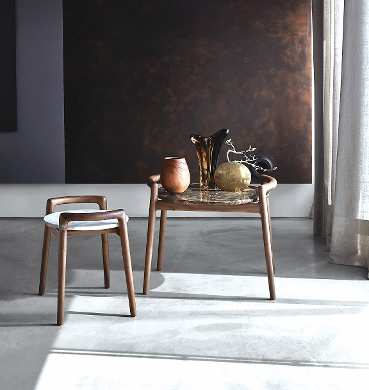 Miegamojo baldų pasirinkimą dažnai lemia emocijos. Tikras miegalius gali drąsiai rinktis tamsias sienas. Jei mėgstate keltis anksti, reikalingos yra šviesios, švelnios ir džiaugsmingos spalvos, kurios maloniai žadins kas rytą. Gyvi, ryškūs spalvoti keraminiai staliukai irgi suteiks energijos ir bus originalūs. Jie puikiai atrodys ir tamsių sienų fone. Kaip vakarinė suknelė dažniausiai yra blizgi, ryški ir puikiai dera su tamsiais vakaro tonais, taip ir blizgūs staliukai tiks miegamajame ir skleis paslaptingą, pasakišką, dramatišką nuotaiką.