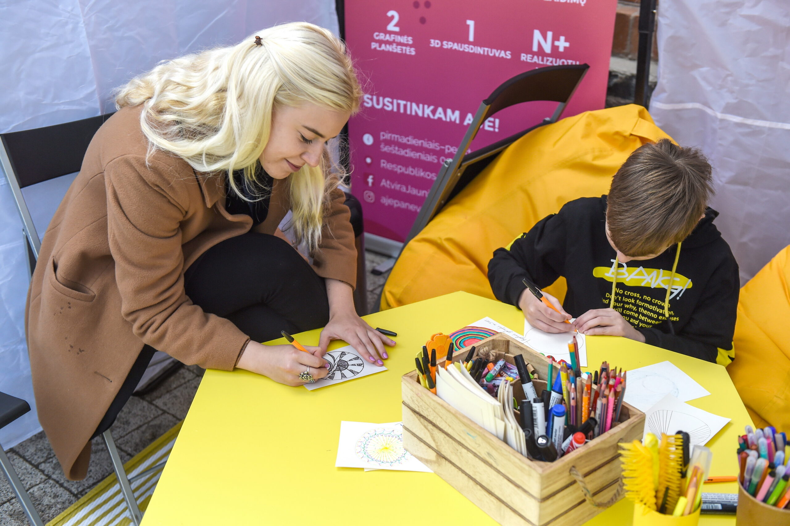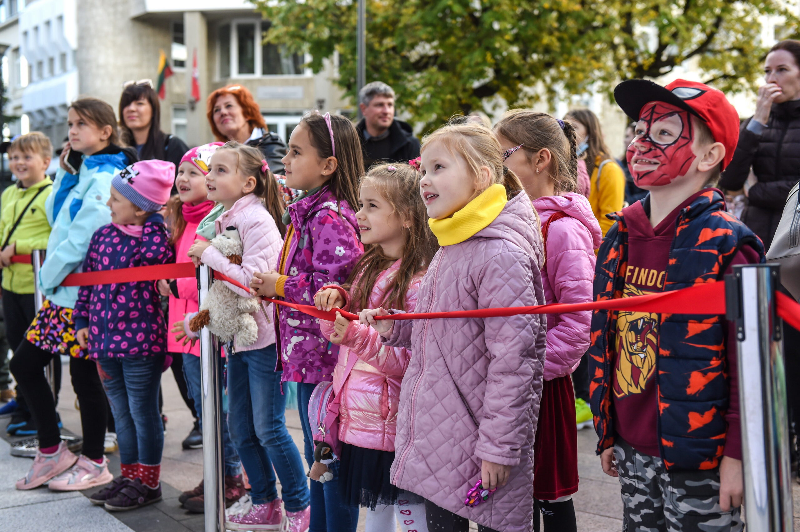 Po jų šioje vietoje iš karto pasipylė muilo burbulai ir erdvę prieš Savivaldybę užėmė vaikai. Jie klausėsi bendraamžių muzikos koncerto, dažais spalvojo tikrą automobilį ir džiaugėsi jiems surengtomis visomis linksmybėmis.