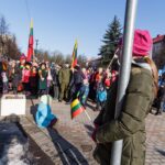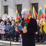 „Džiaugiasi širdis, kai viduržiemy Laisvės aikštė pražysta geltonai, žaliai, raudonai“, – į susirinkusiuosius kreipėsi renginio vedėjas aktorius Albinas Kėleris.