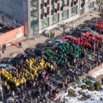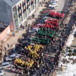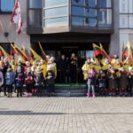 Po iškilmingo minėjimo ir vėliavos pakėlimo ceremonijos Laisvės aikštėje per keturis šimtus žmonių, kurių dauguma apsigobė geltonomis, žaliomis, raudonomis skraistėmis, sustojo į simbolinį žodį „Laisvė“.