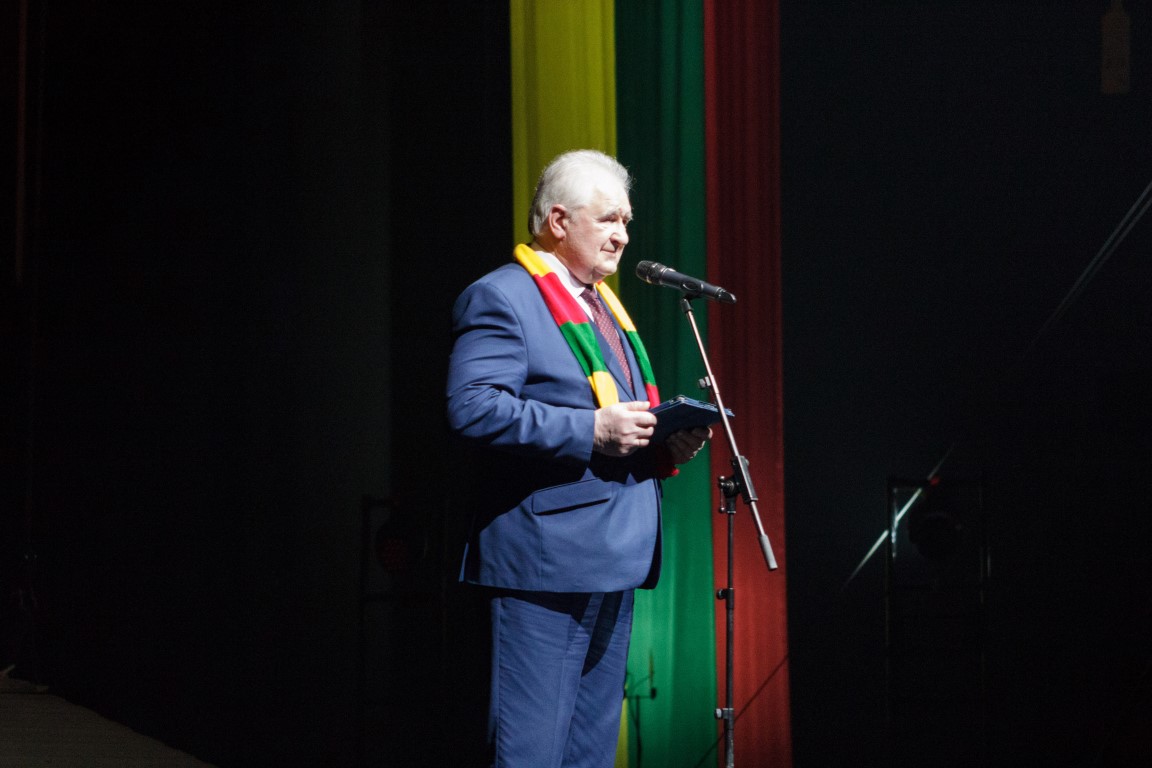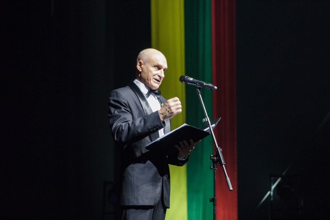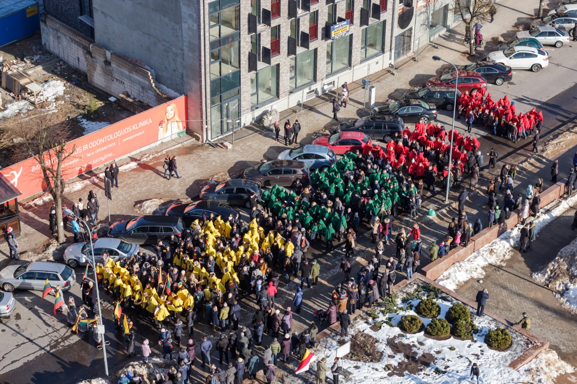 „Džiaugiasi širdis, kai viduržiemy Laisvės aikštė pražysta geltonai, žaliai, raudonai“, – į susirinkusiuosius kreipėsi renginio vedėjas aktorius Albinas Kėleris.