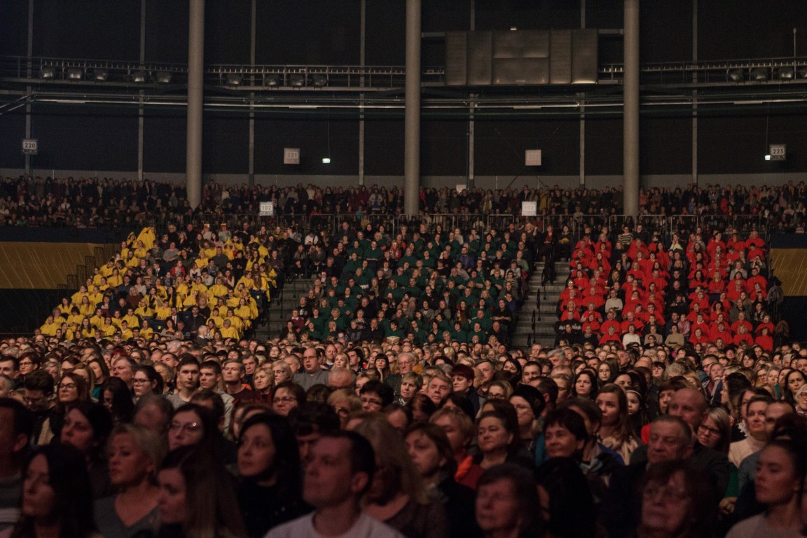 O jų išties buvo tiek, kad užimtos ne tik sėdimos vietos, bet ir nusėsti praėjimai. Net ir prasidėjus miuziklui grupelės žmonių tebeplūdo į areną.