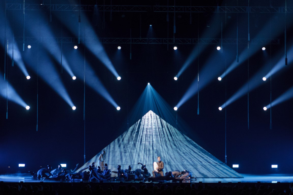 Po eisenos arenoje susirinkusių panevėžiečių ir miesto svečių laukė ne tik sveikinimai ypatingos šventės proga, bet ir lietuviškoji legenda – miuziklas „Eglė – žalčių karalienė“. Pasiklausyti nemokamo miuziklo minios panevėžiečių rinkosi iki renginio likus kiek daugiau nei pusantros valandos. Dar prieš renginį tikėtasi, kad bus sulaukta rekordiškai daug – per 7 000 – žiūrovų.