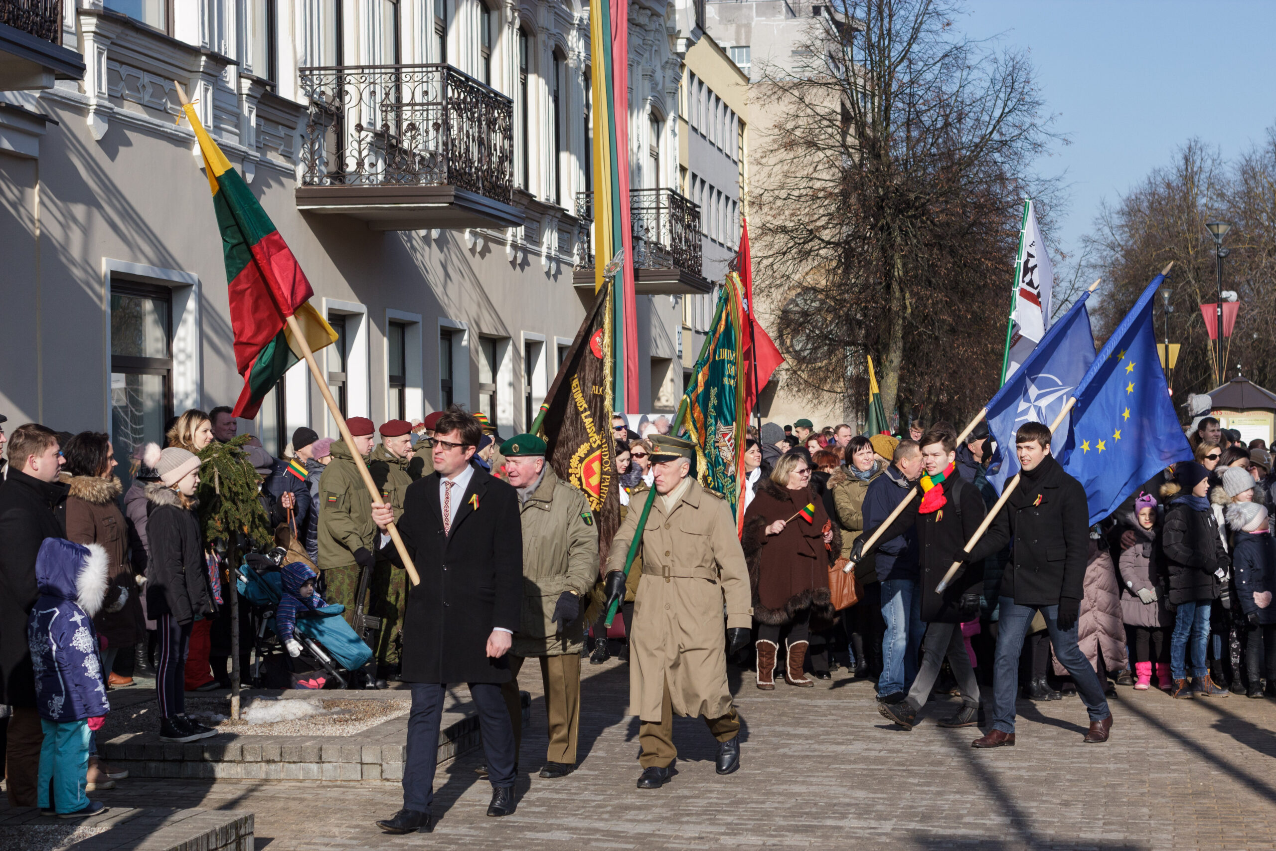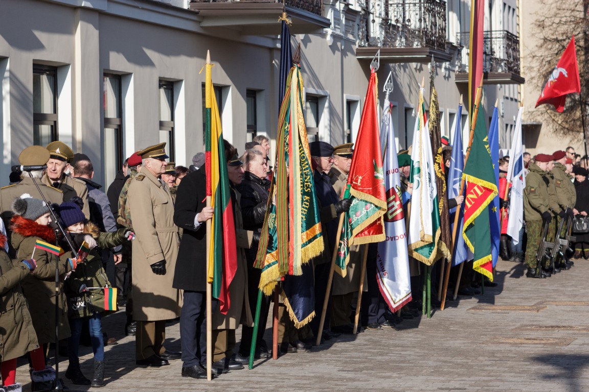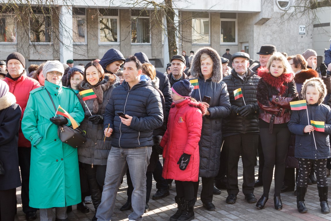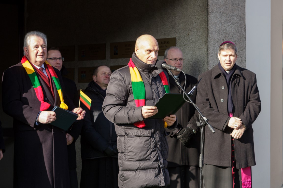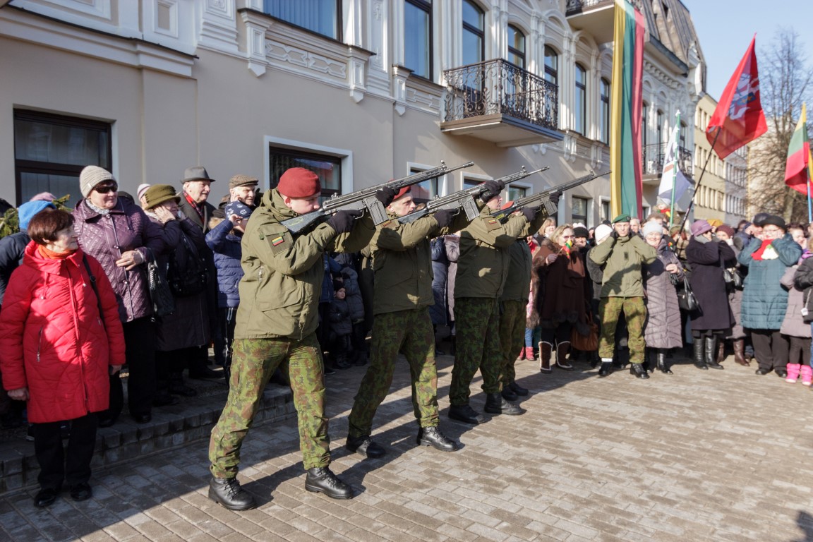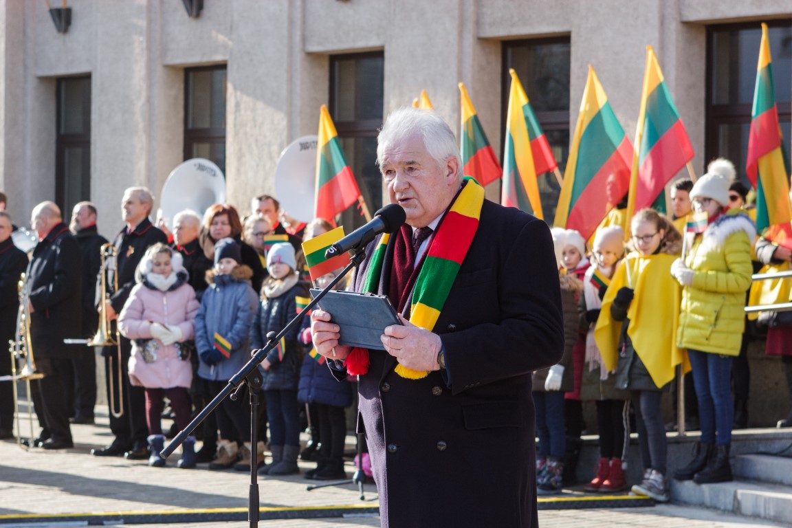 „Šiandien minime tris sukaktis: prieš 70 metų į suvažiavimą susirinkę visos Lietuvos partizanų apygardų atstovai paskelbė įkuriantys vieną pasipriešinimo organizaciją – Lietuvos laisvės kovos sąjūdį – ir priėmė politinę deklaraciją, kuria konstatuota, jog taryba yra aukščiausiasis tautos politinis organas, vadovaujantis politinei ir karinei tautos išlaisvinimo kovai, kad būtų atkurta nepriklausoma, demokratinė respublika. Taip pat sukanka 30 metų, kai po ilgos okupacijos Vasario 16-oji buvo oficialiai paminėta 1989 metais Mokslų akademijoje vykusiame posėdyje. Be to šiandien minime ir šimtas pirmąsias Valstybės metines“, – susirinkusiems priminė vicemeras, laikinai einantis mero pareigas, Aleksas Varna.