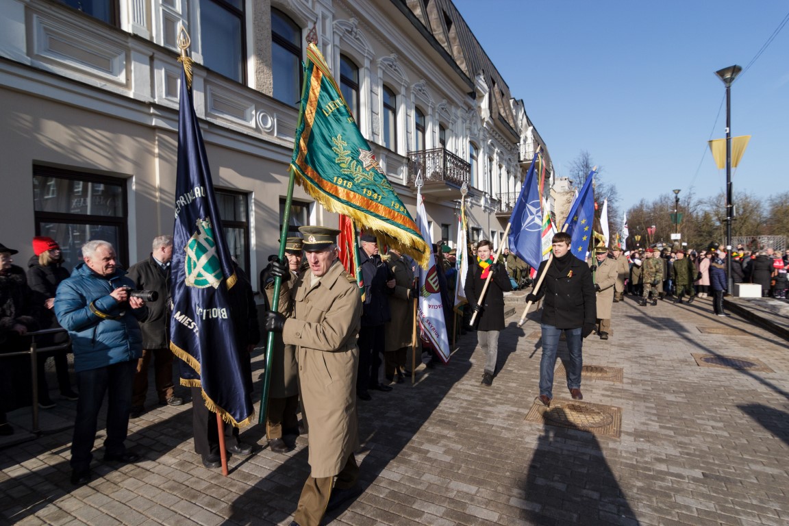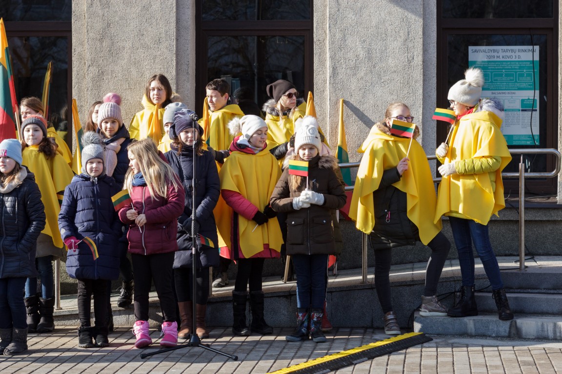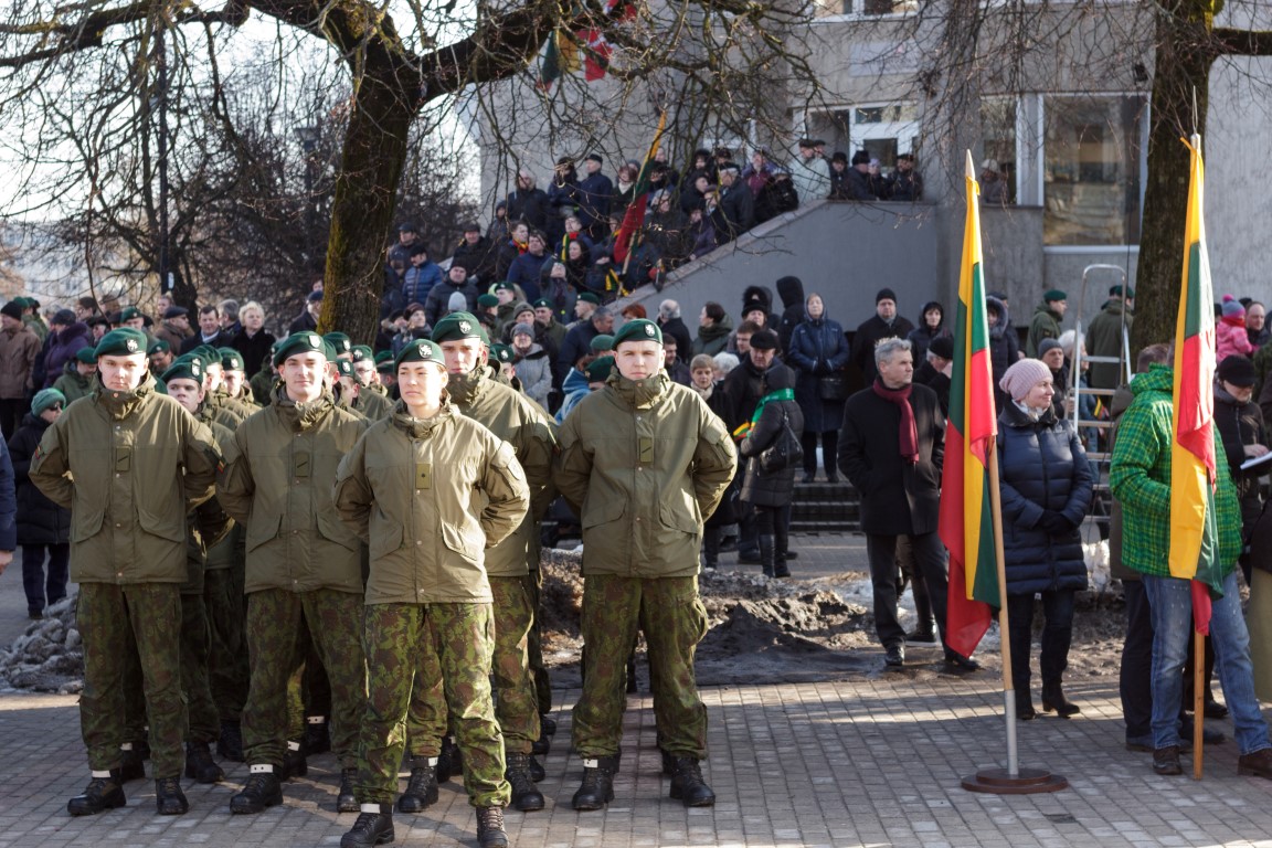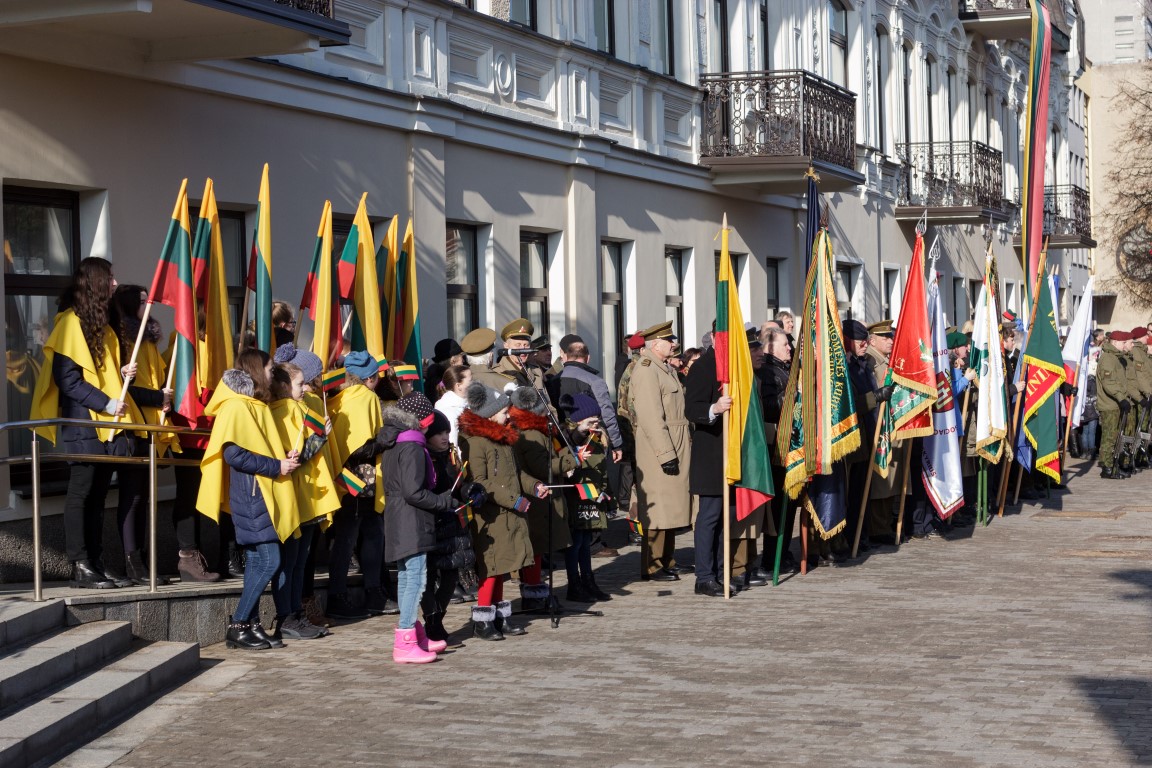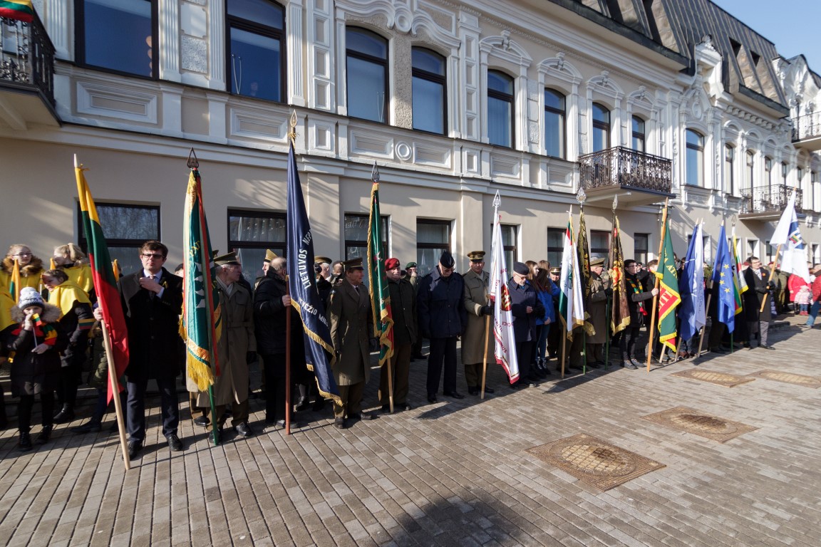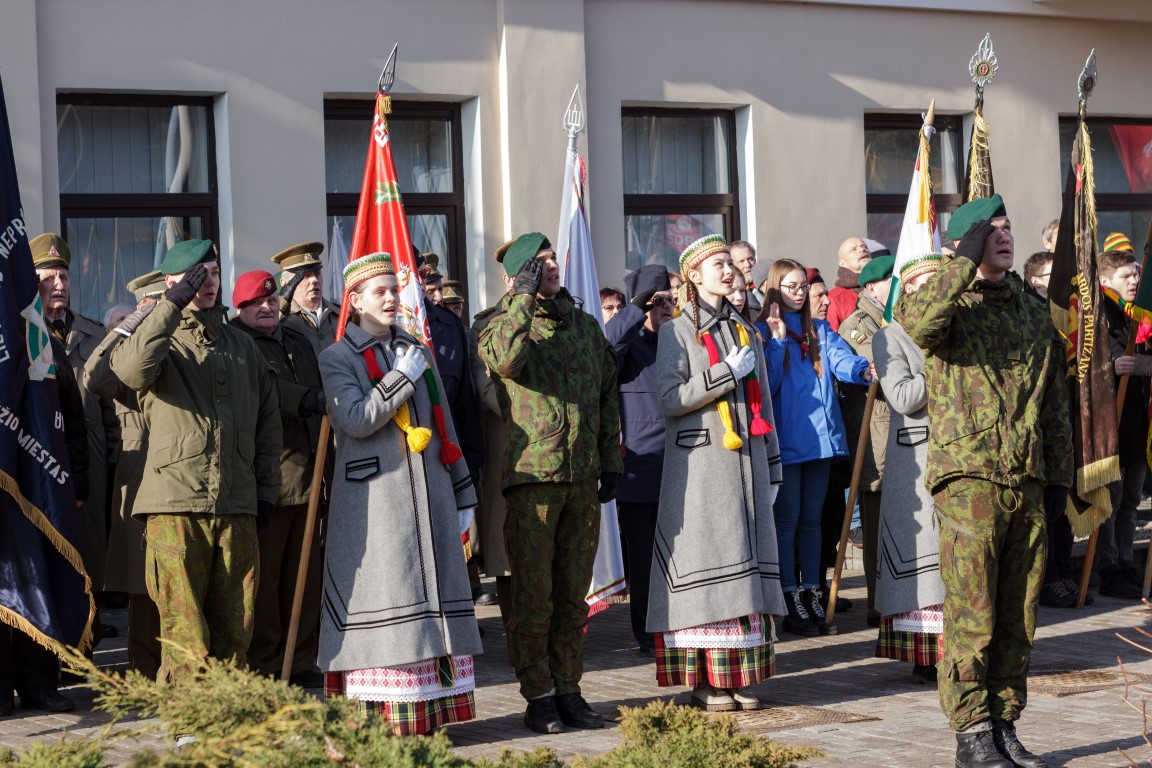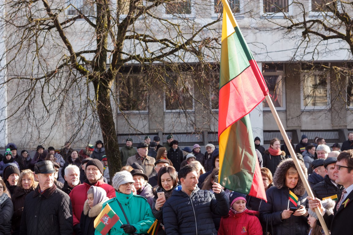 „Šiandien minime tris sukaktis: prieš 70 metų į suvažiavimą susirinkę visos Lietuvos partizanų apygardų atstovai paskelbė įkuriantys vieną pasipriešinimo organizaciją – Lietuvos laisvės kovos sąjūdį – ir priėmė politinę deklaraciją, kuria konstatuota, jog taryba yra aukščiausiasis tautos politinis organas, vadovaujantis politinei ir karinei tautos išlaisvinimo kovai, kad būtų atkurta nepriklausoma, demokratinė respublika. Taip pat sukanka 30 metų, kai po ilgos okupacijos Vasario 16-oji buvo oficialiai paminėta 1989 metais Mokslų akademijoje vykusiame posėdyje. Be to šiandien minime ir šimtas pirmąsias Valstybės metines“, – susirinkusiems priminė vicemeras, laikinai einantis mero pareigas, Aleksas Varna.