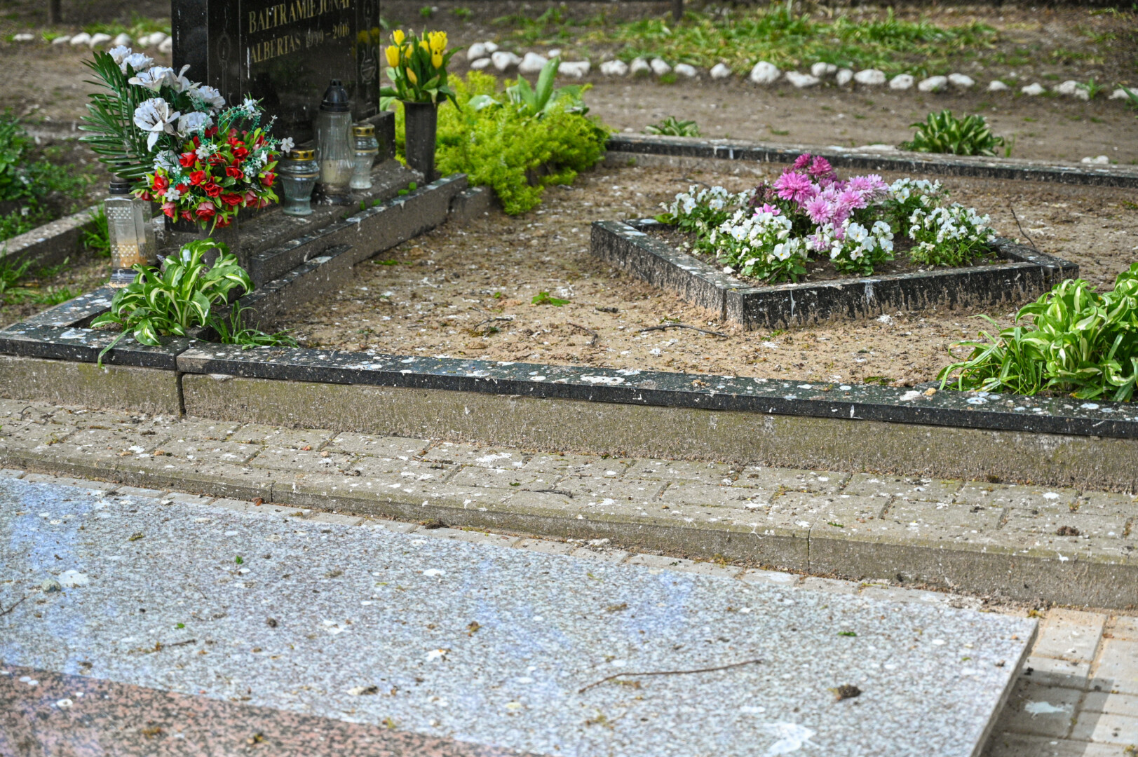 O jau įžengus į kapines pasitinka toks vaizdas, kurį savo artimųjų kapavietę tvarkiusi Vida įvardijo tiesiog kraupiu. Kone ant kiekvienos prie pagrindinio kapinių tako esančios kapavietės bortelių, paminklų, antkapių, skaldelės, akmeninių plokščių – paukščių išmatos.