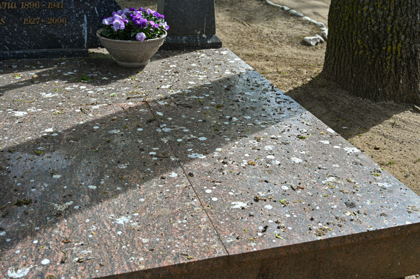 Artimųjų kapavietę prižiūrinti Danutė pasakoja kasdien čia atminanti dviračiu. Ji sako įsigijusi specialų aštrų šepetį ir juo gremžia per dieną prie kapavietės priskrentančias paukščių išmatas.