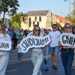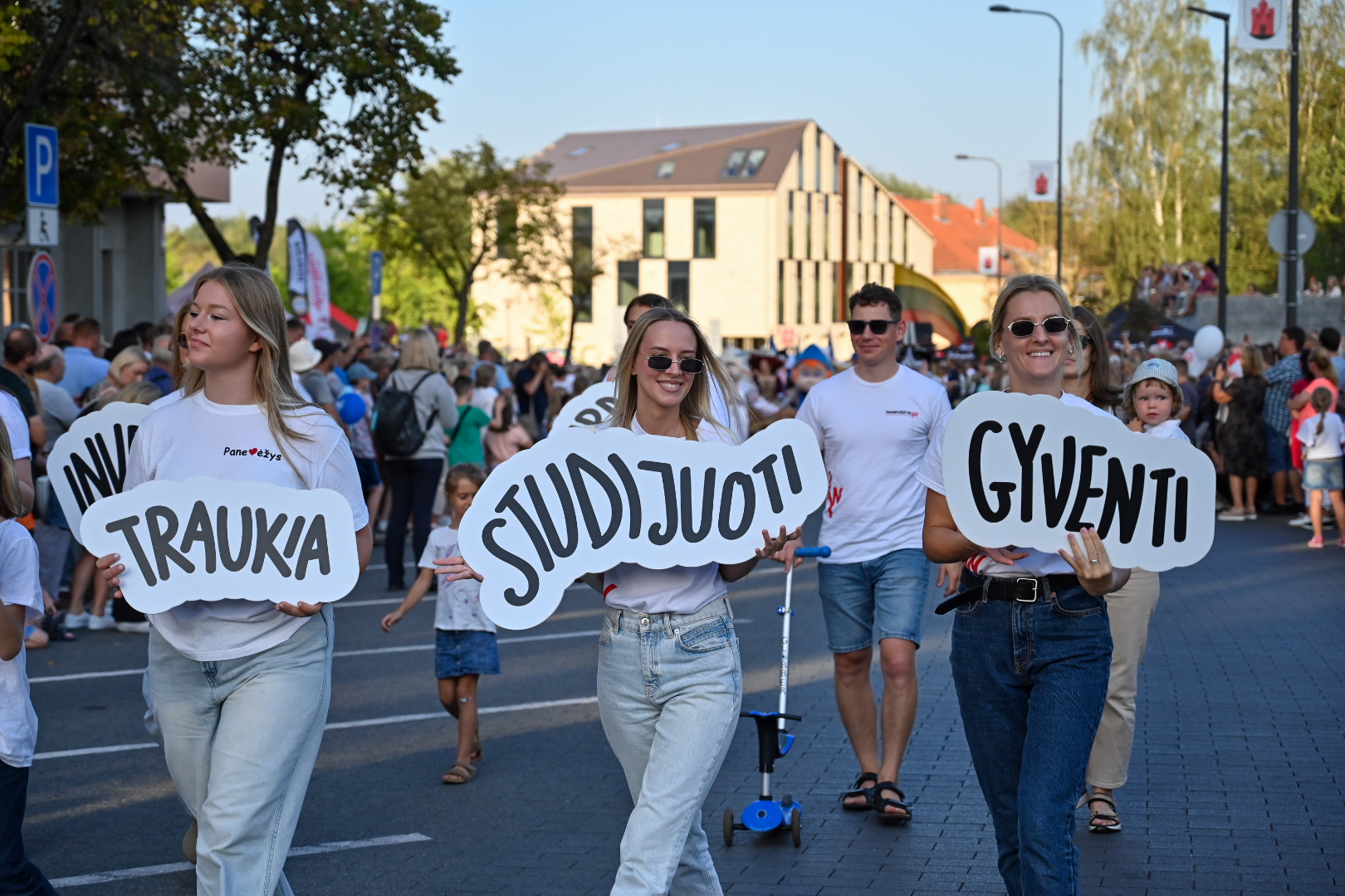Panevėžiečiams eisenoje mojavo dešimtąjį veiklos sezoną paminėjusio Visapusiško lavinimo centro bendruomenė – jaunos šeimos su vaikais.