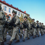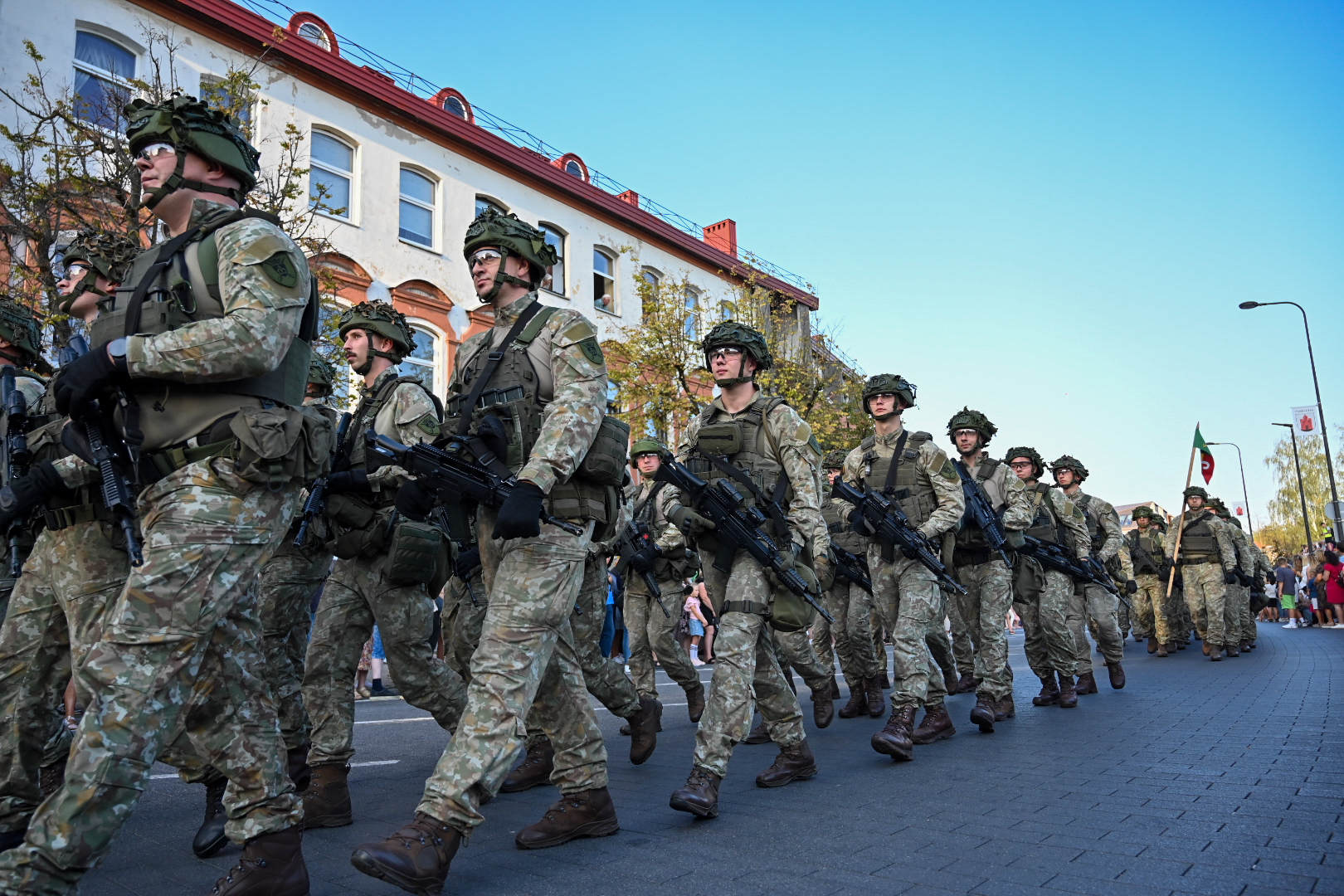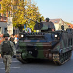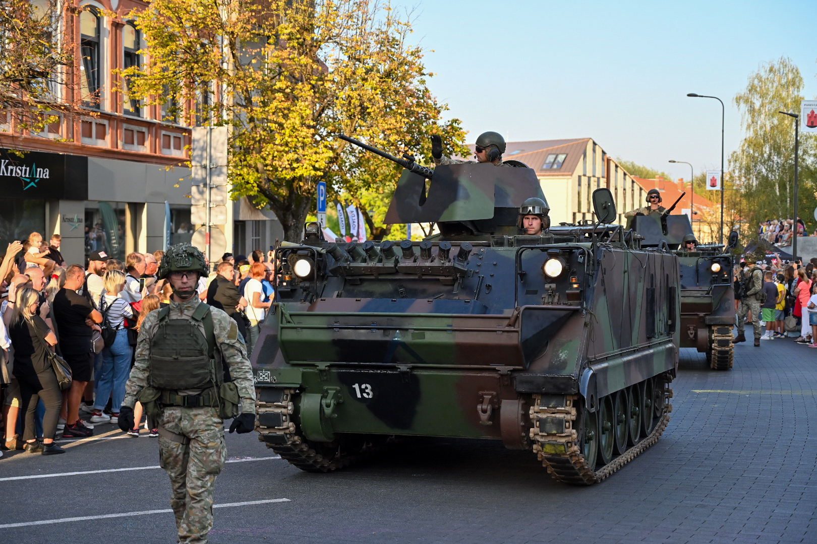 Įspūdingu akcentu tapo šaulių gretos, gatvėmis riedėjusi karinė technika ir ją lydėję kariai.
