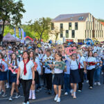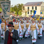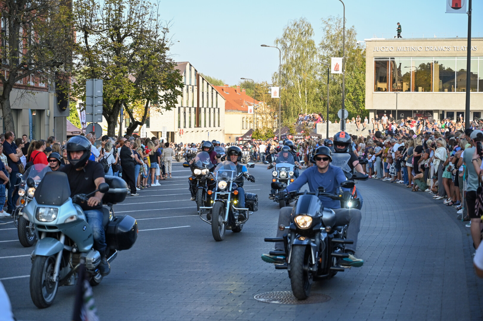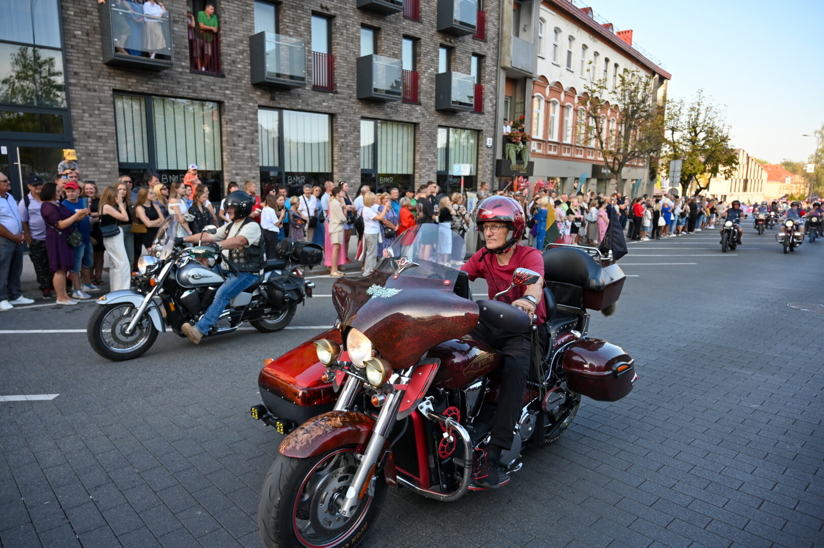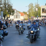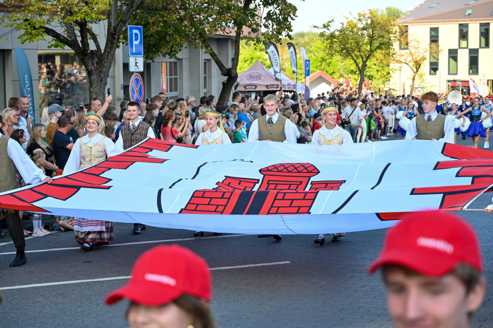 Eiseną pradėjo motociklų klubas, skambantis orkestras bei tautiniais drabužiais pasipuošę jaunuoliai nešini Panevėžio vėliava.