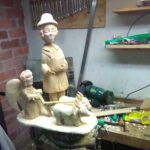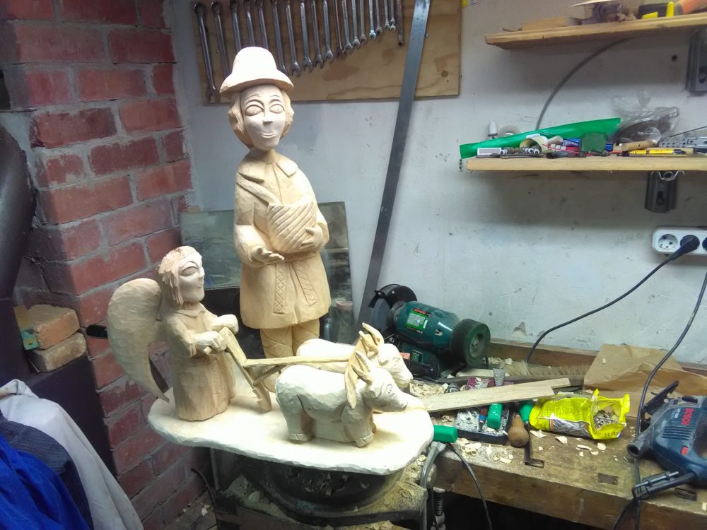 Kol mintys atvedė iki šventųjų, tautodailininkas buvo ėmęsis įamžinti medyje įvairius darbus dirbančius žmones – drožė medkirtį, sodininką, piemenuką ir kt.