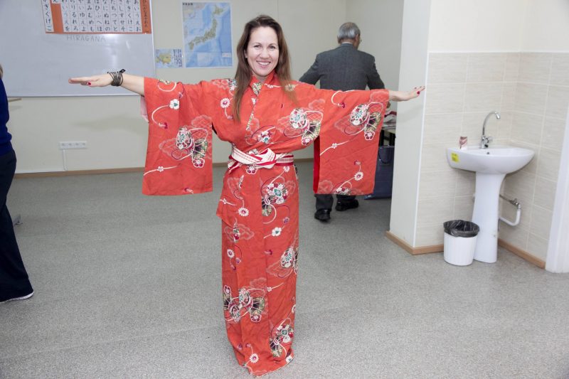 Mokiniai, įsiklausydami į patarimus, su malonumu rengėsi jiems neįprastu apdaru. Jis pasakojo, kad kimono ne šiaip drabužis – pagal jį gali būti atpažįstama moters šeiminė, finansinė padėtis. Svarbi kiekviena aprangos detalė, kiekviena klostė.