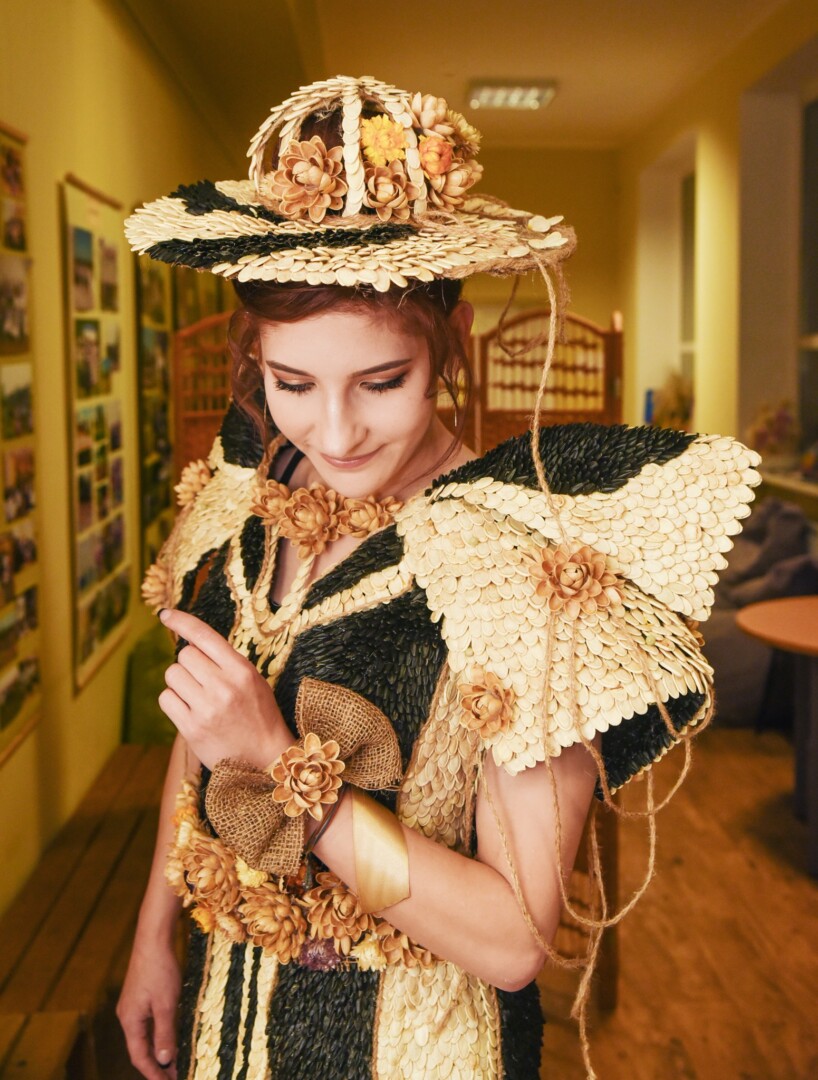 S. Šaparnytės pomėgis – įspūdingi, be galo kruopštūs kostiumai iš įvairiausių gamtinių žaliavų. Tokių drabužių kūrėja neslepia, kad pasakoti apie juos būtų labai sunku – reikia pamatyti ir paliesti.