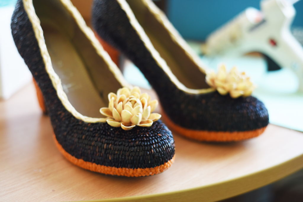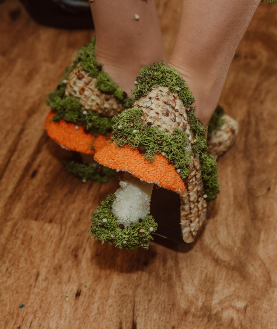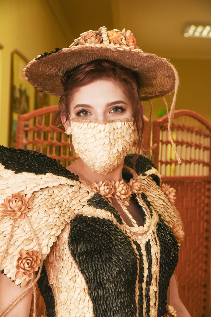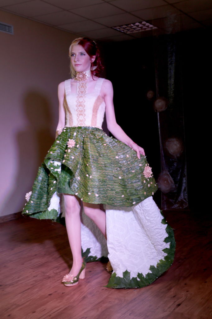 Skrupulingai iš smulkiausių moliūgų sėklų sudėliota unikali suknelė ir prie jos derantys bateliai, dekoruoti tokiomis pačiomis medžiagomis. Antakį kilstelėti verčia puošni suknia iš samanų, džiovintų apelsinų, citrinų, greipfrutų riekelių, lęšių, ryžių, pipirų ir priderinta neįtikėtino dydžio ir svorio kankorėžiais padabinta skrybėlaitė. Tai tik keletas kūrinių. Jais nesustoja stebinti ši išskirtiniu talentu apdovanota mergina.