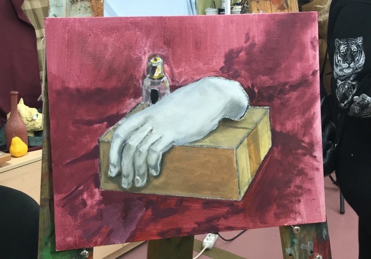 Ekspozicijai talentingas vaikinas surinko beveik visus savo trečios klasės kurso dailės pamokose tapytus darbus ant drobės. Tarp jų įsiterpė ir vienas namuose sukurtas paveikslas.