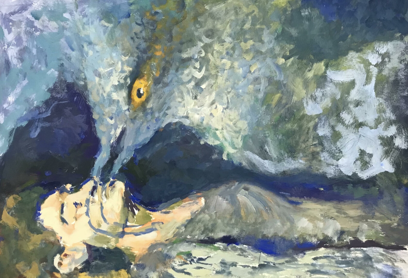 Vienas brangiausių tapytų darbų R. Serafinui yra Dailės mokyklos baigiamasis darbas. Kol kas jis – pats didžiausias paveikslas, kokį menininkas yra nutapęs. Asmeninio archyvo nuotr.