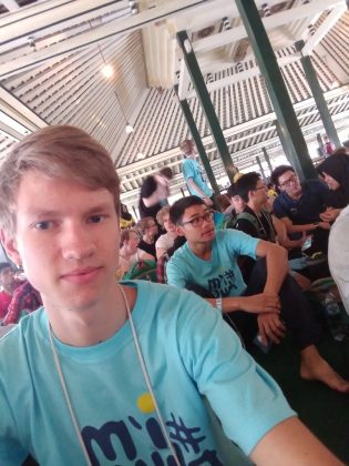 Olimpiadoje jam teko atlikti dvi eksperimentines ir dvi teorines užduotis. Vienoje iš užduočių teko nagrinėti molekulių difuziją ir jos įtaką tirpalo lūžio rodikliui, kitoje – grafito šerdelės levitaciją magnetiniame lauke. Teorinės užduotys buvo trys: apie galaktikų tamsiąją materiją, apie tamsiąją energiją ir Visatos plėtimąsi, apie Indonezijai aktualius gamtinius pavojus (ugnikalnių išsiveržimus, žemės drebėjimus, cunamius).