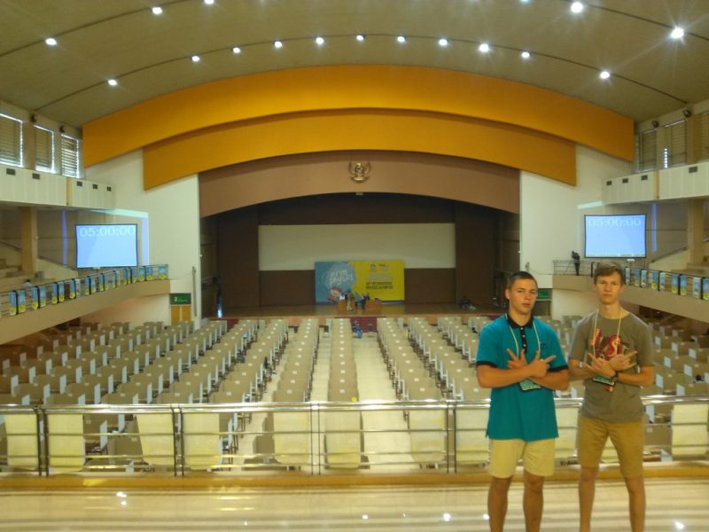 Olimpiadoje jam teko atlikti dvi eksperimentines ir dvi teorines užduotis. Vienoje iš užduočių teko nagrinėti molekulių difuziją ir jos įtaką tirpalo lūžio rodikliui, kitoje – grafito šerdelės levitaciją magnetiniame lauke. Teorinės užduotys buvo trys: apie galaktikų tamsiąją materiją, apie tamsiąją energiją ir Visatos plėtimąsi, apie Indonezijai aktualius gamtinius pavojus (ugnikalnių išsiveržimus, žemės drebėjimus, cunamius).