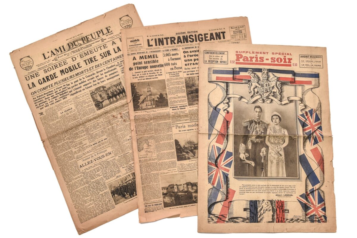 Muziejui padovanoti laikraščiai išleisti 1932–1938 metais. Juose aprašomos Paryžiaus, Prancūzijos, Europos ir viso pasaulio aktualijos. Nebesužinosime, ar šiuos egzempliorius prieškario inteligentai specialiai atsirinko ir saugojo, ar tai atsitiktinumas, bet net dviejuose pavyko aptikti informacijos, susijusios su Lietuva. 1933 m. liepos 19 d. dienraščio „Paris-soir“ pirmajame puslapyje pranešama apie netoli Soldino tragiškai pasibaigusį lietuvių lakūnų Stepono Dariaus ir Stasio Girėno skrydį per Atlantą. Pranešimas atspindi tuometinę oficialią nelaimės versiją – prastas matomumas, oro sąlygos. Taip pat rašoma, kad Lietuvos vyriausybė savo didvyrių palaikus pargabens į Kauną ir organizuos valstybines laidotuves. Žinutė pateikta šalia kitų aviacijos naujienų, iliustruota nuotrauka iš „Lituanicos“ katastrofos vietos.